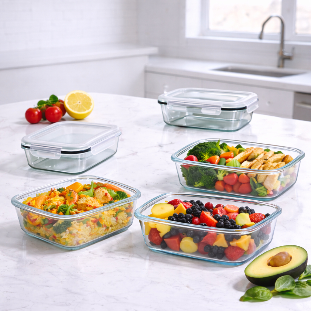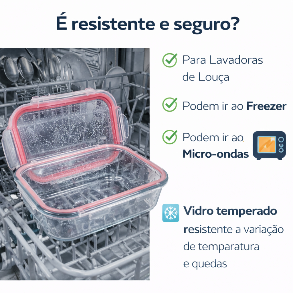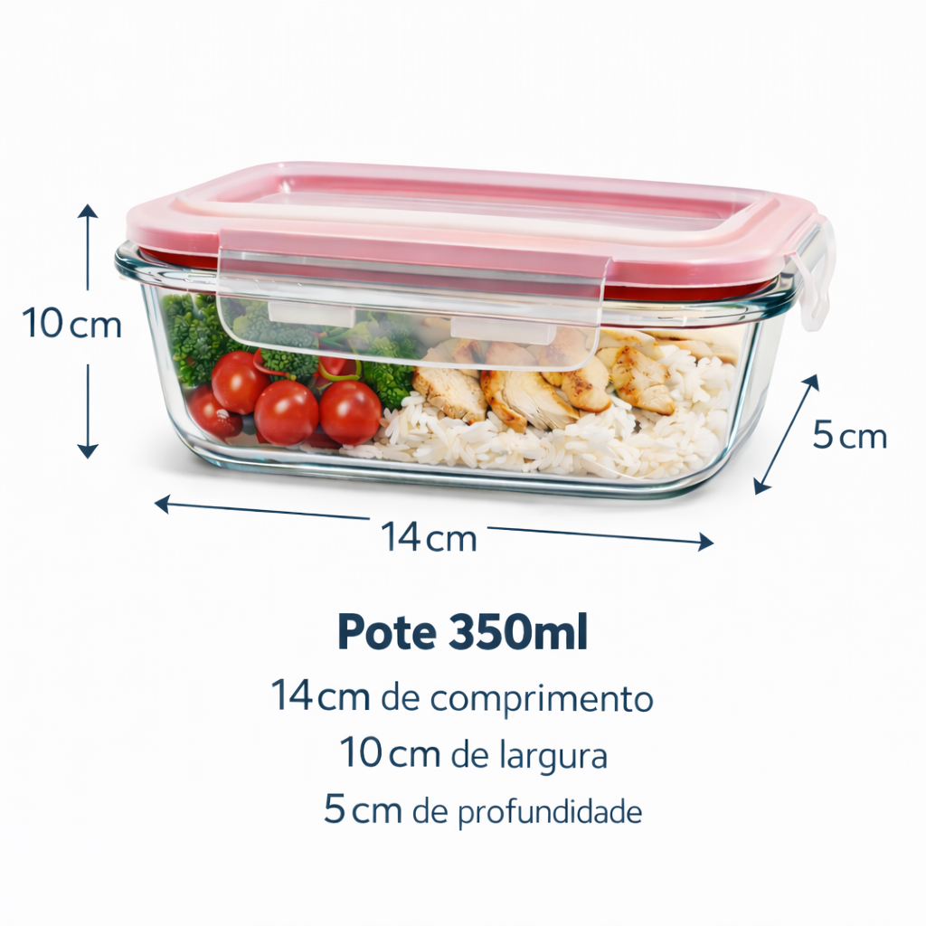 Kit 5 Potes Herméticos 350ml de Vidro com Tampa Marmita Freezer e Micro-ondas