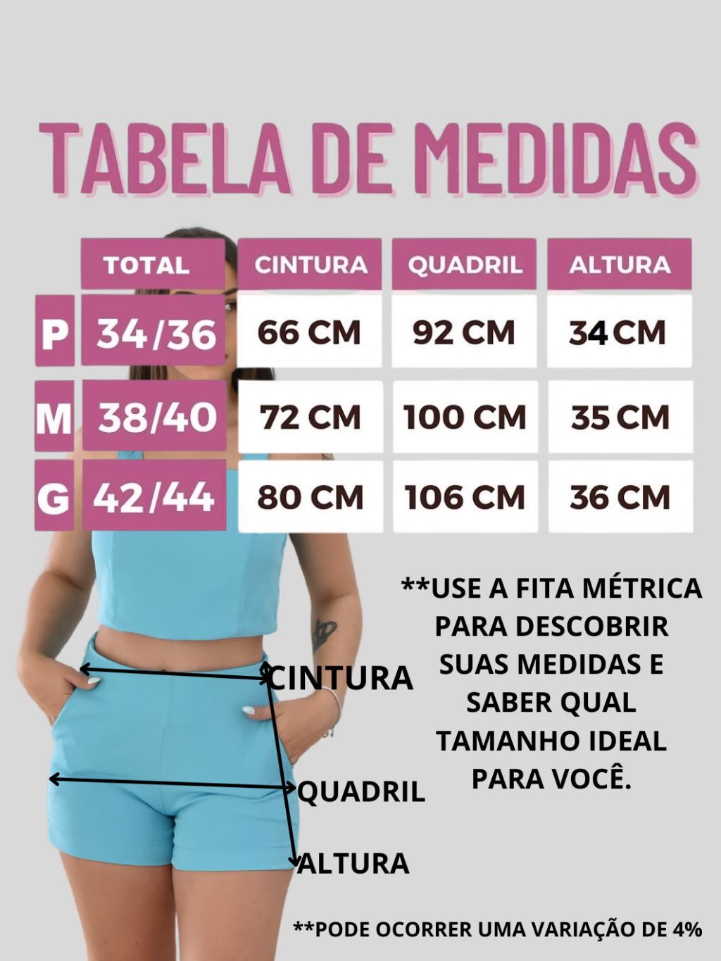 Kit 4 Short Alfaiataria Feminino Cintura Alta Com Bolso e Zíper na Lateral
