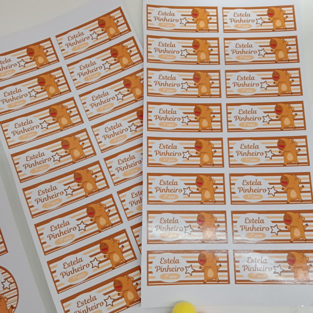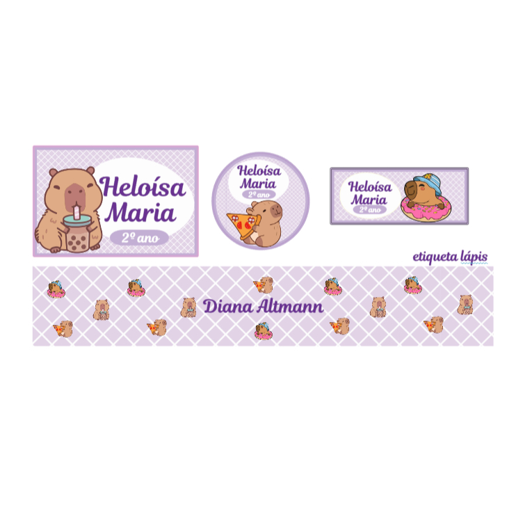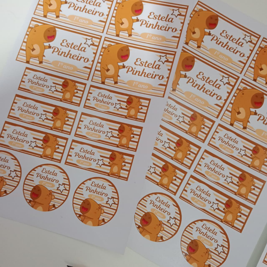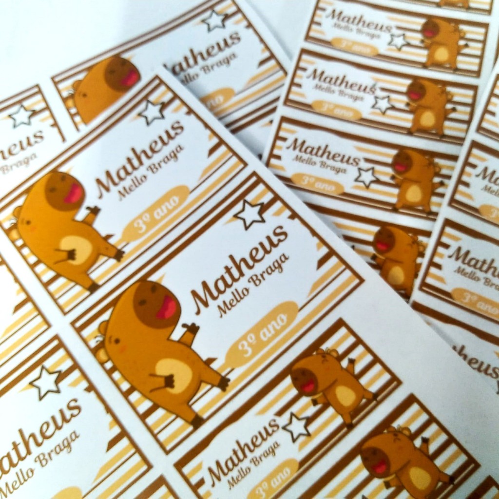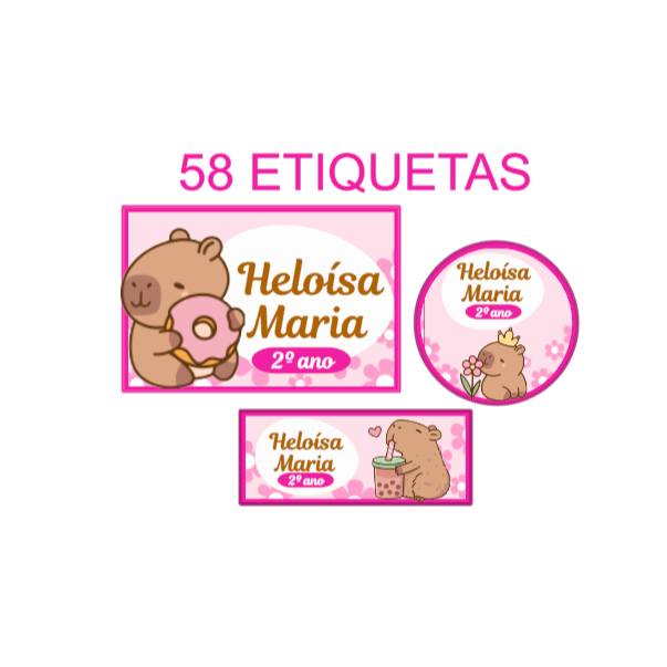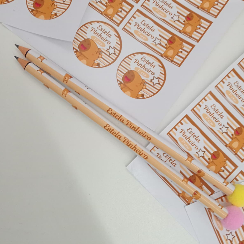 Kit 60 itens Etiquetas Escolar Capivara com Nome para Material 58 etiquetas e 2 lápis personalizado
