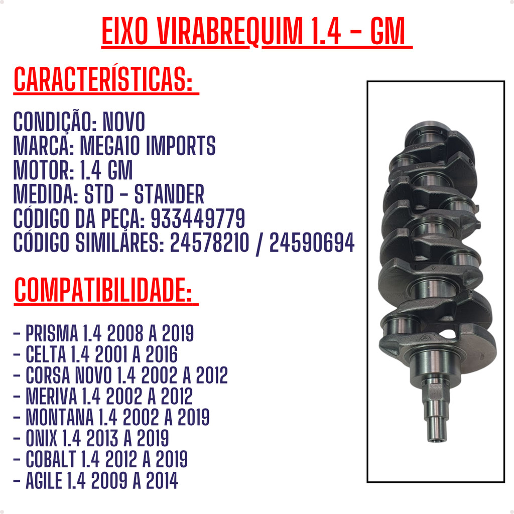 Eixo Virabrequim 1.4 8v Corsa Meriva Montana Prisma Std Manivela