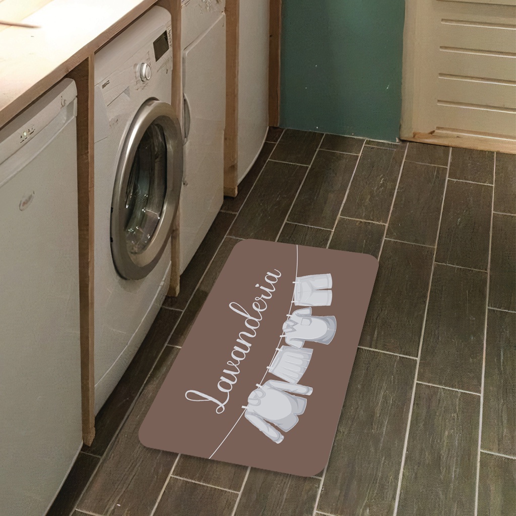 Tapete de Lavanderia Roupa no Varal Cor Marrom Antiderrapante Dcorô ENVIO RÁPIDO!!
