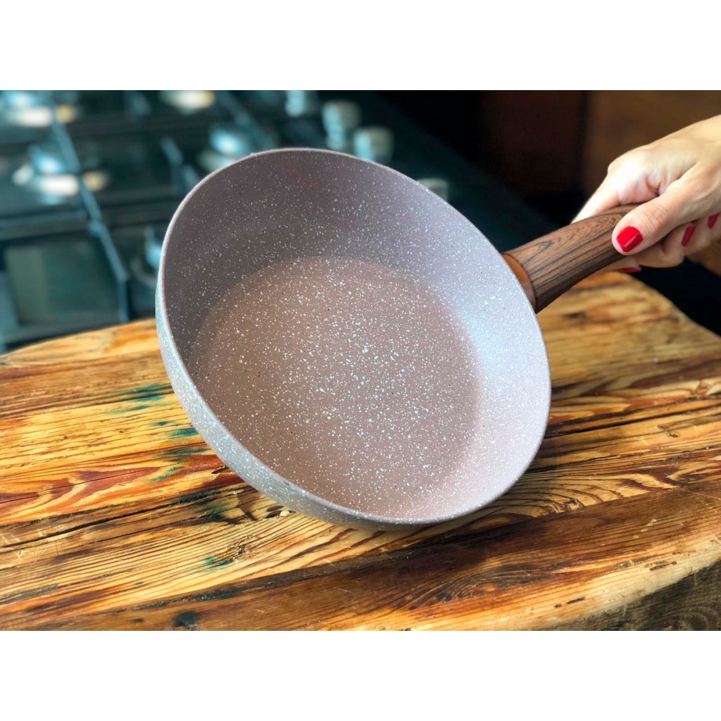 Frigideira Antiaderente Pó De Mármore para Fogão e Indução Tamanhos 20cm 22 24 26 e 28cm Não Gruda