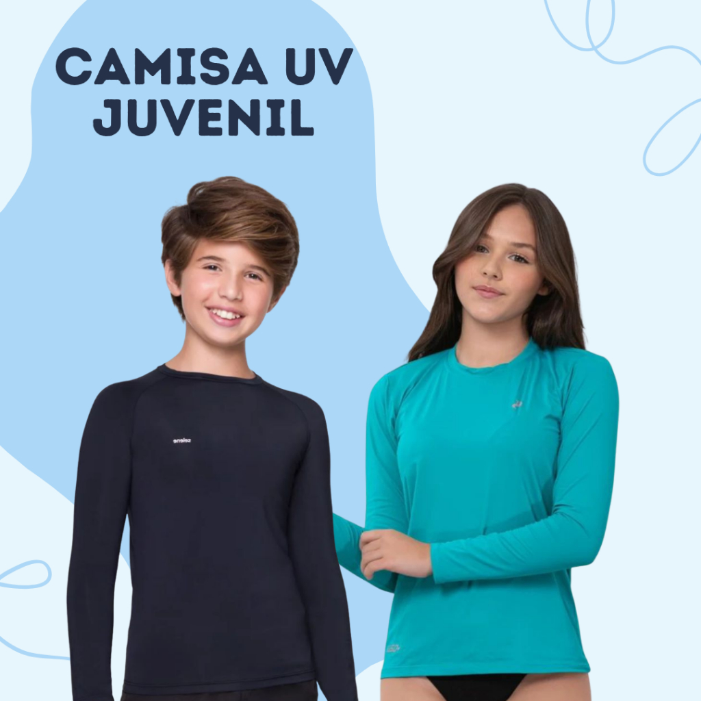 Blusa UV Infantil e Juvenil UV50+ Proteção Solar 2 a 16 Anos Unissex