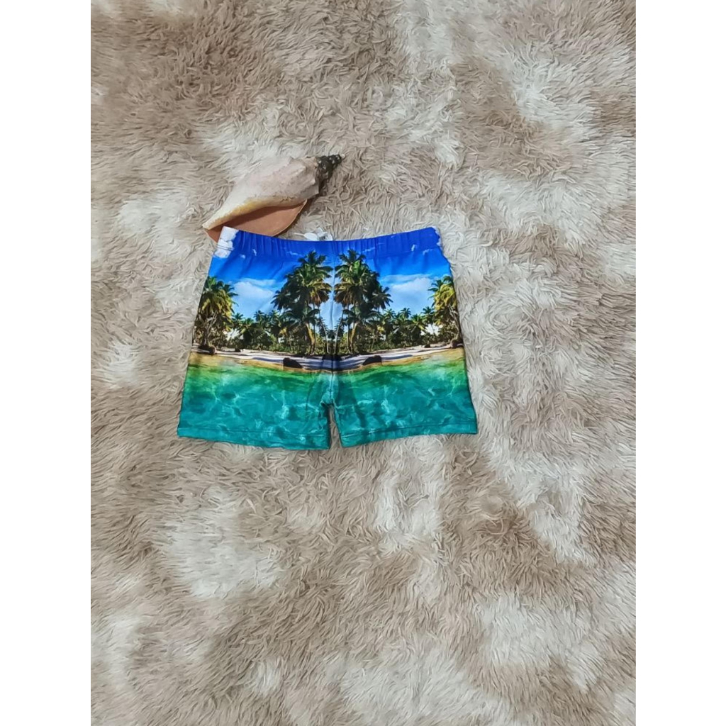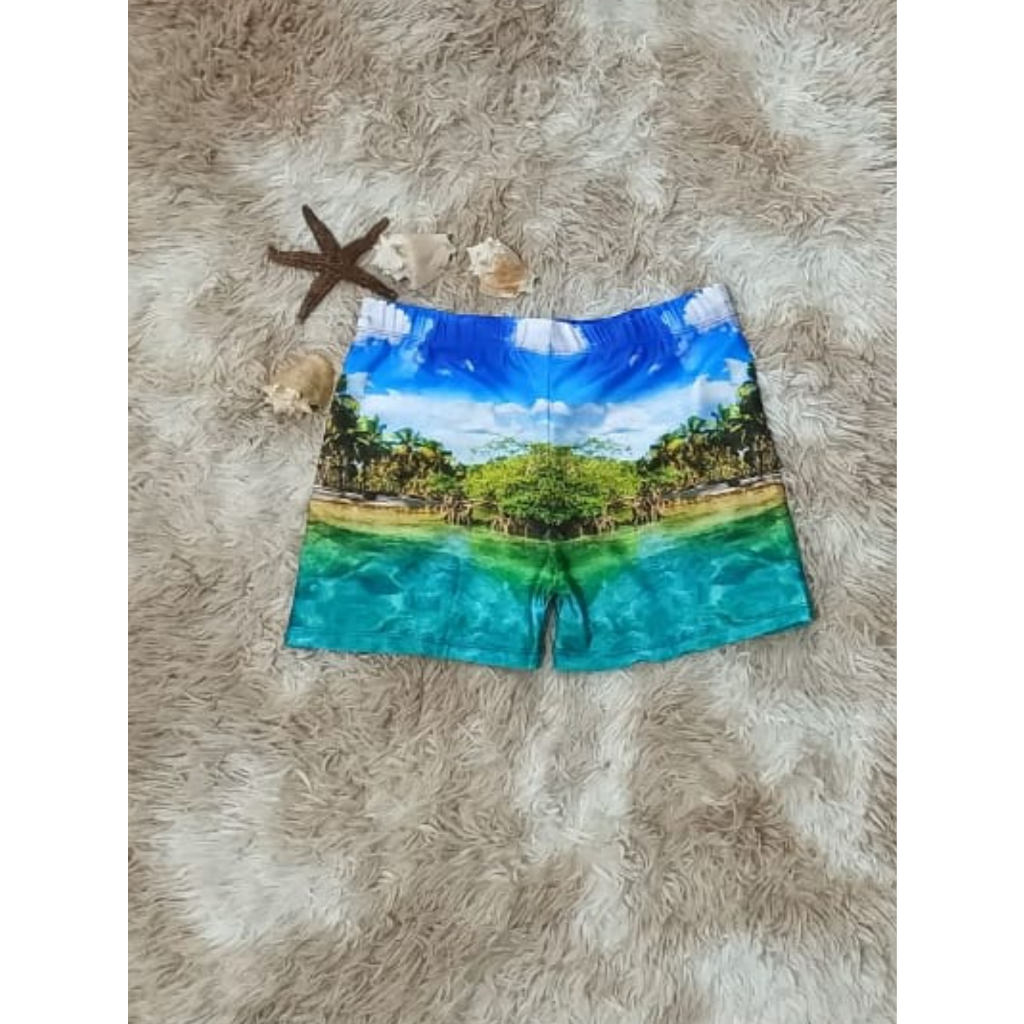 sunga masculino com estampa gráfica de vibrações tropicais, sunga de férias de verão
