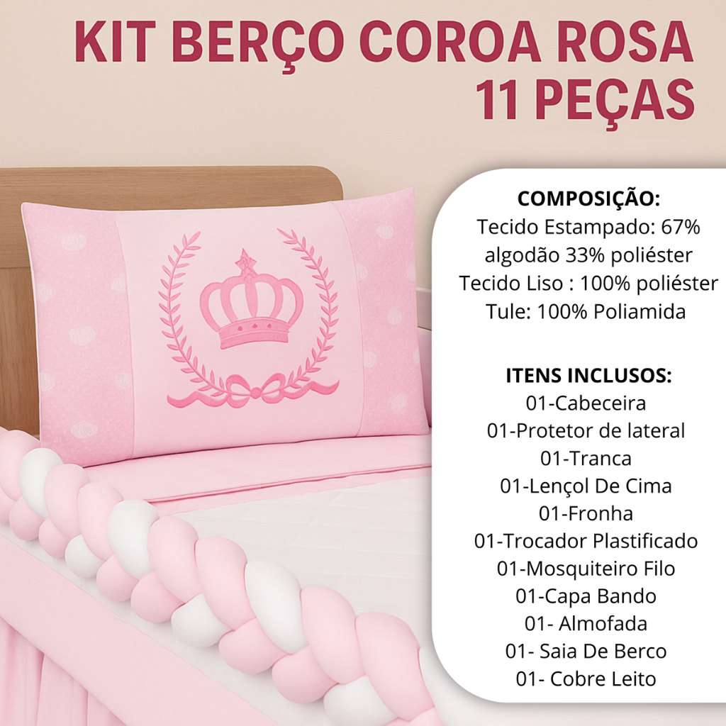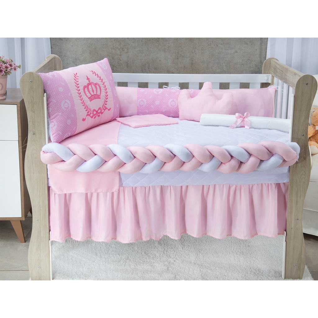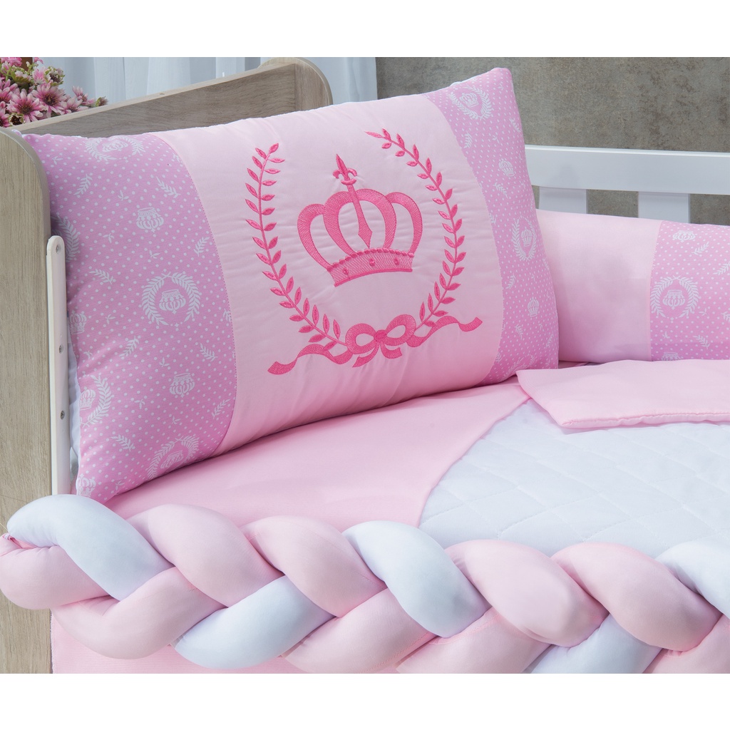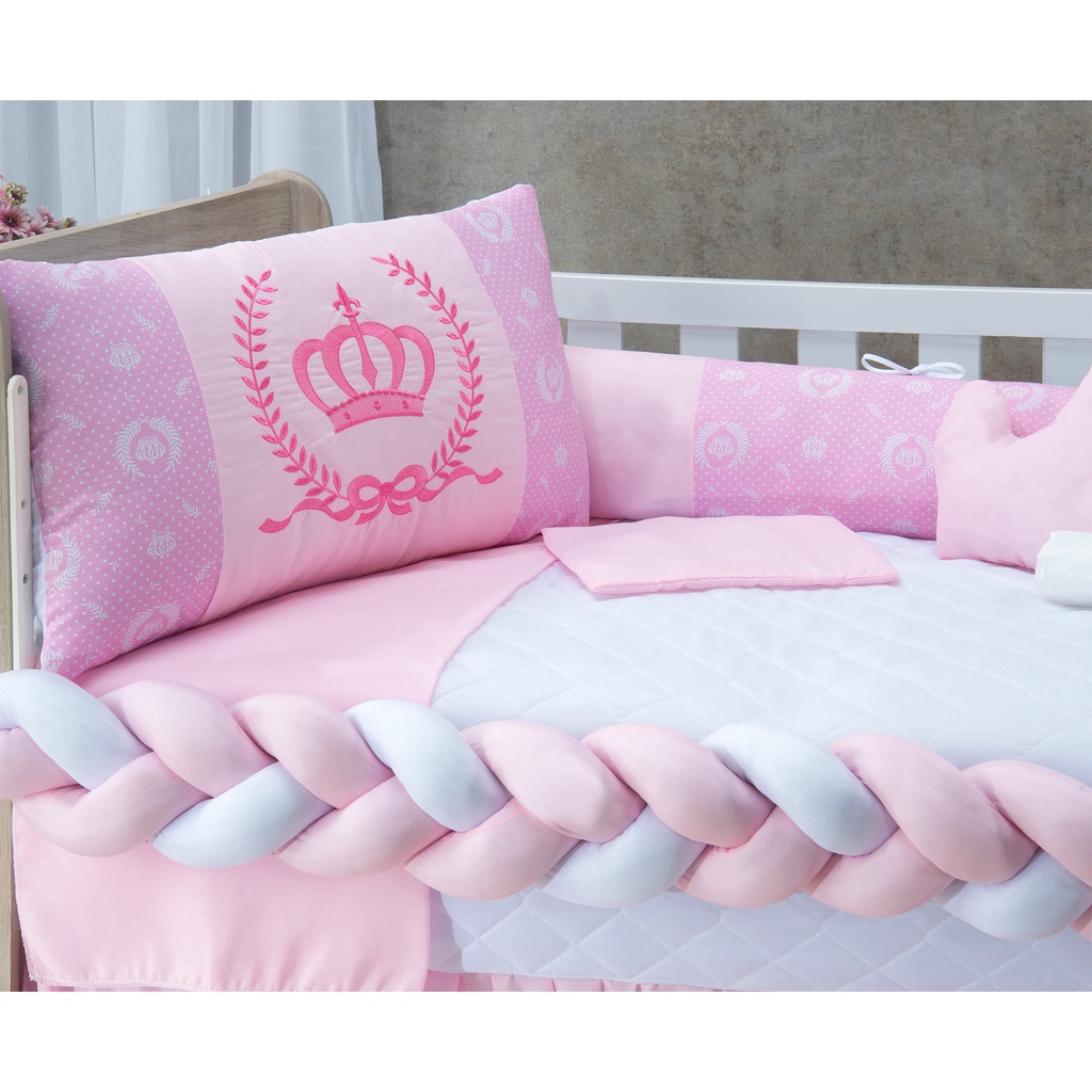 Kit Berço Menina Coroa Rosa 11 Peças Padrão Americano e Nacional - A Pronta Entrega