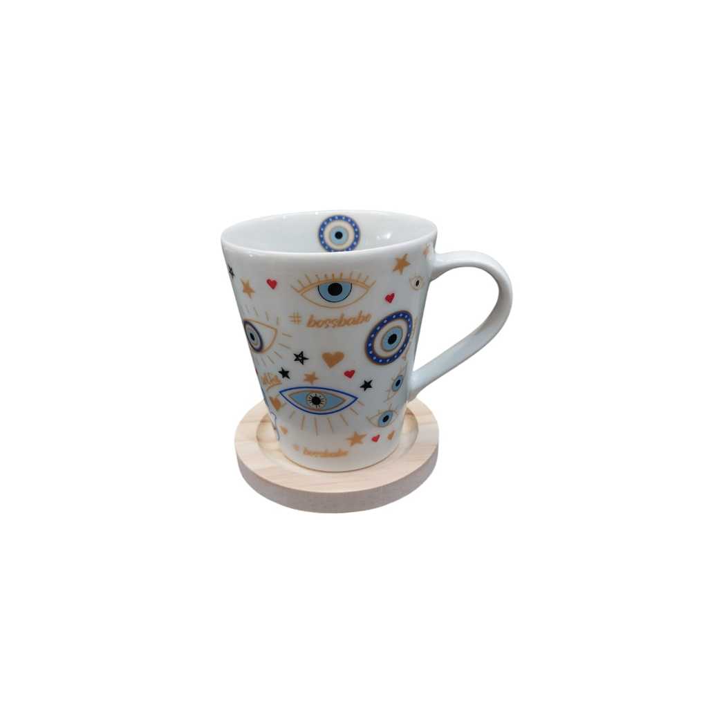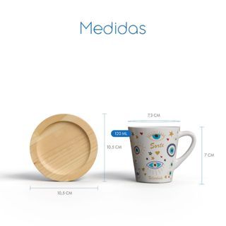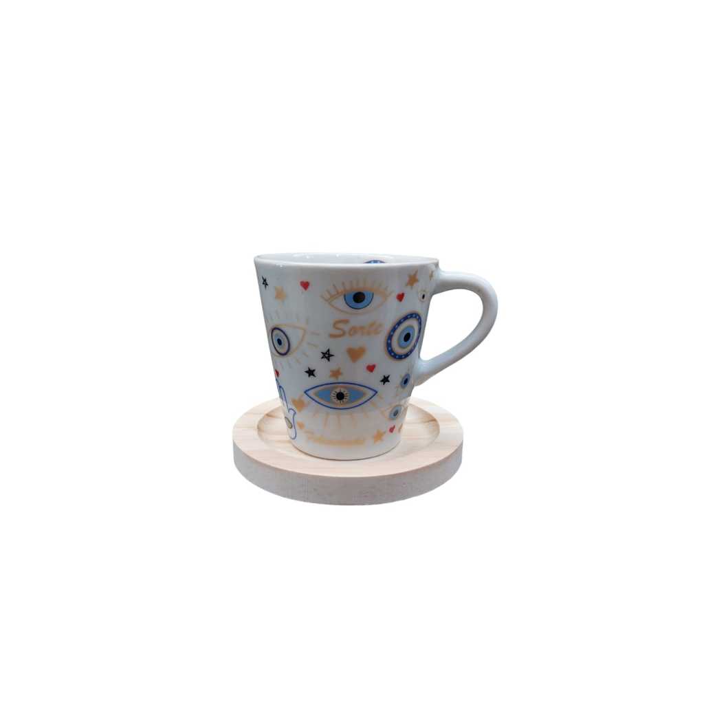 Kit Xicara 120 ml olho grego unica com base em Madeira Pinus