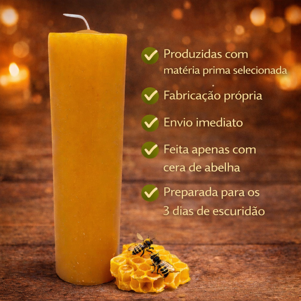 Vela de Cera de abelha 100% pura, maciça, 195 g, 14,5 cm de altura, natural, aroma de mel.