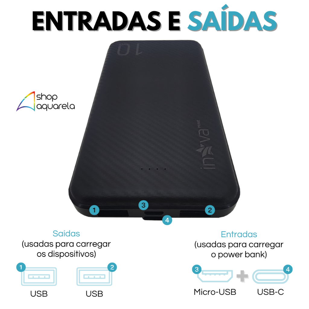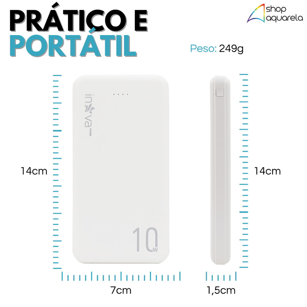Power Bank 10000mAh com 2 Saídas USB Bateria Externa Universal Inova