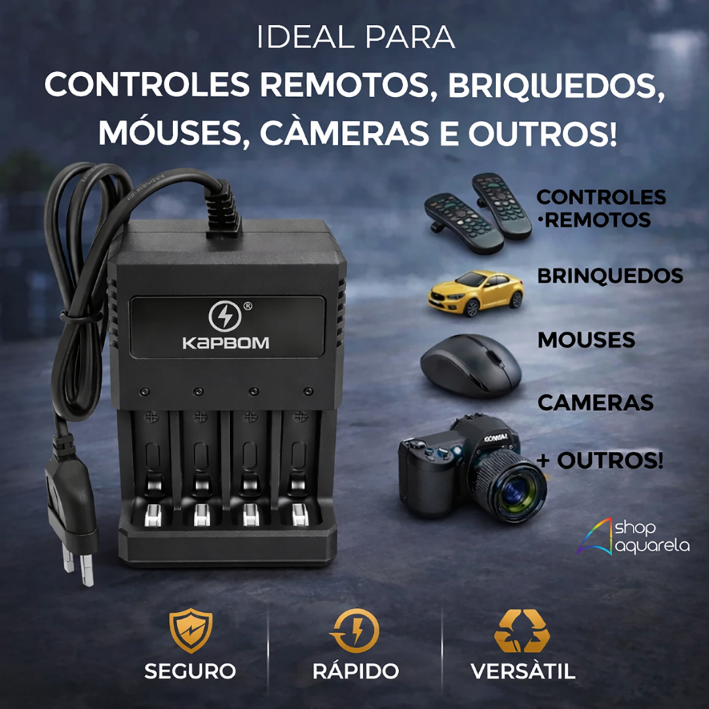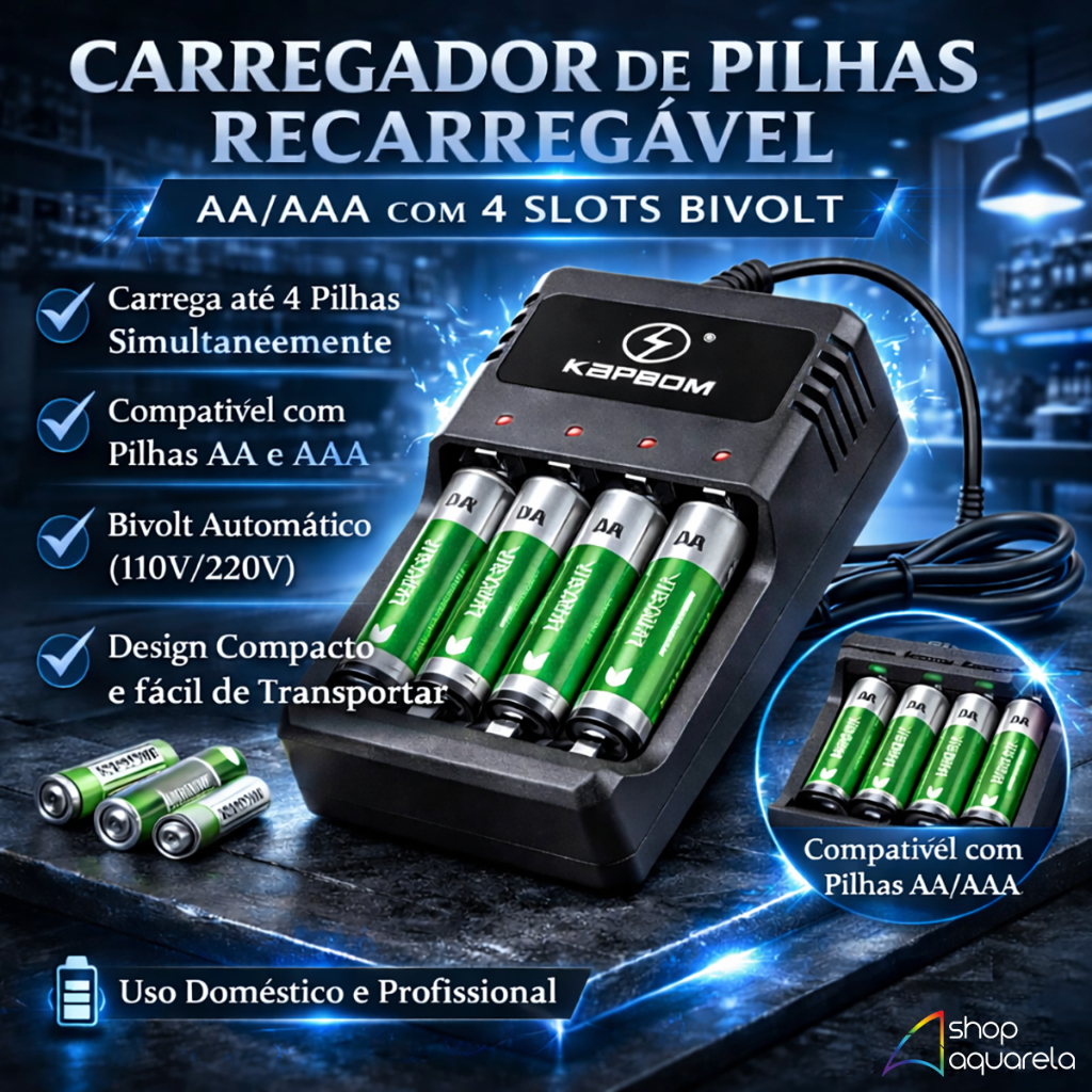 Carregador de Pilhas Bivolt Palito AAA e AA Original Kapbom