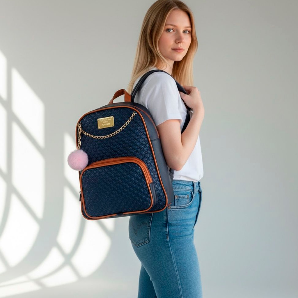 Mochila Feminina Bolsa Da Moda - Escolar - Universidade + Chaveiro Pompom