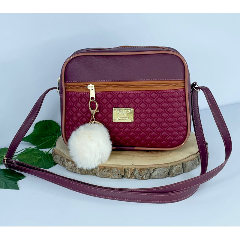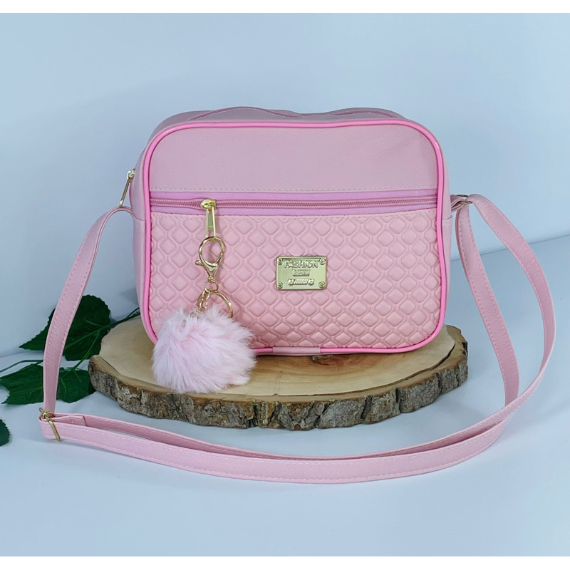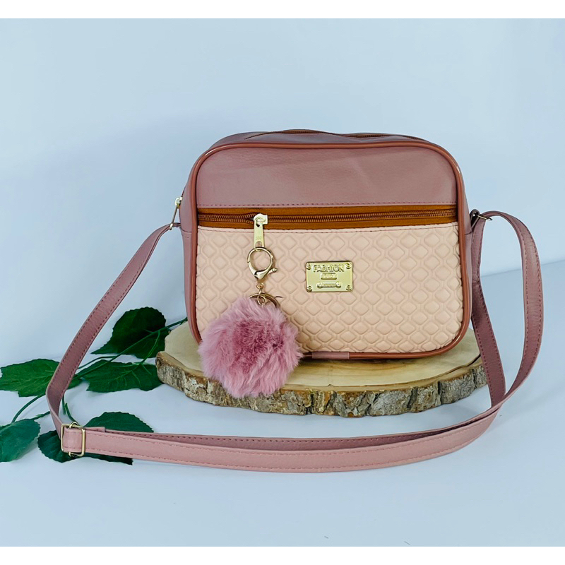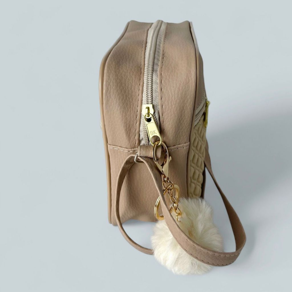 Bolsa Feminina Alça Transversal Tira Colo Estampa Moderna Com Pompom