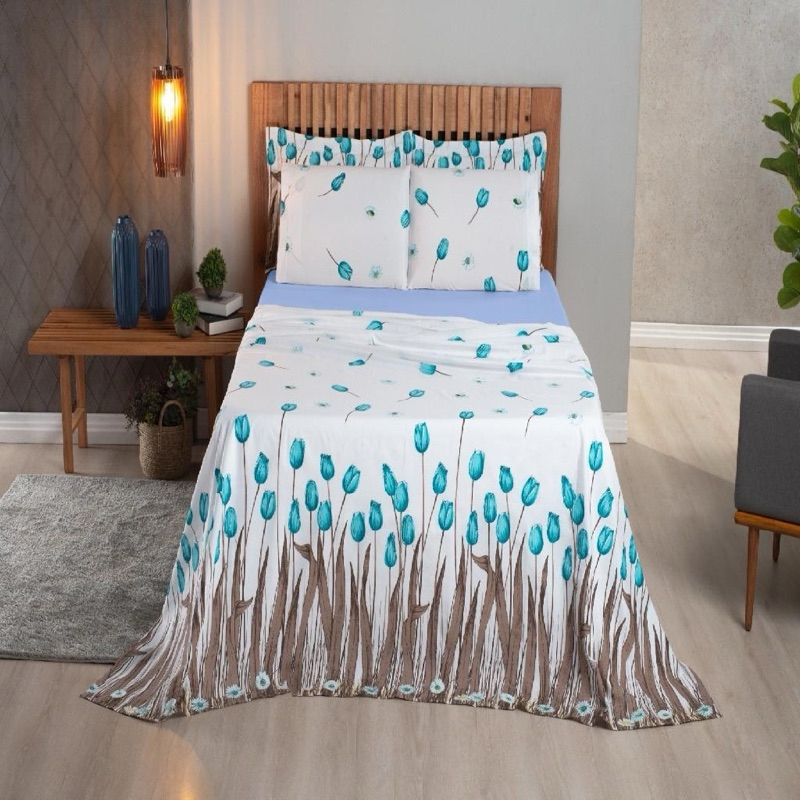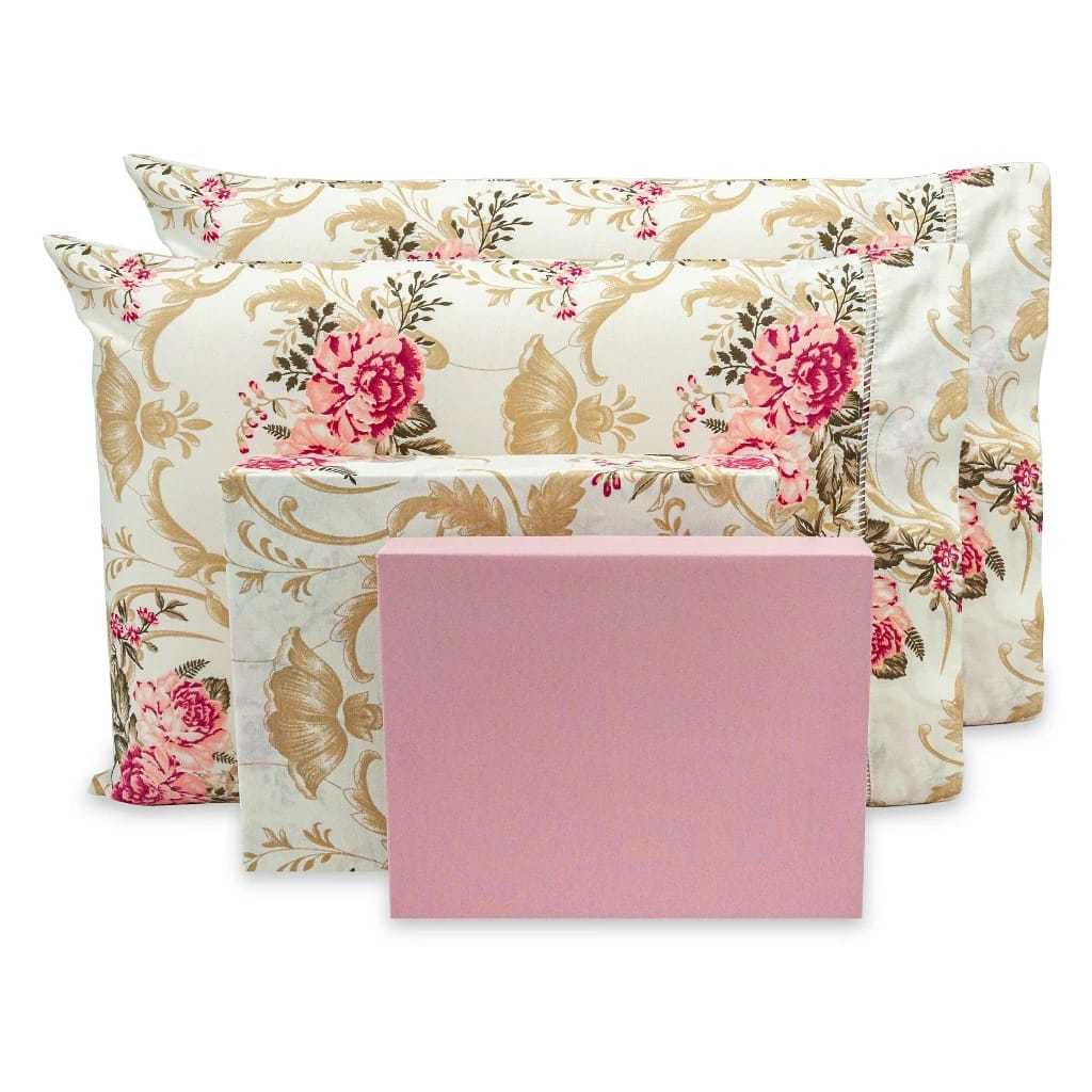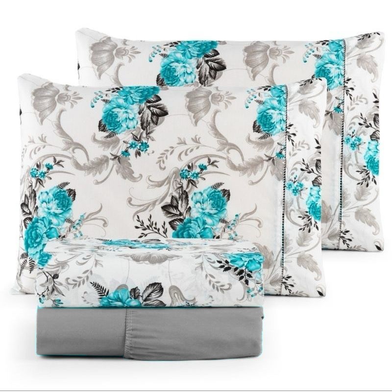 Jogo De Cama Casal 4 Peças Algodão Estampado 180 Fios