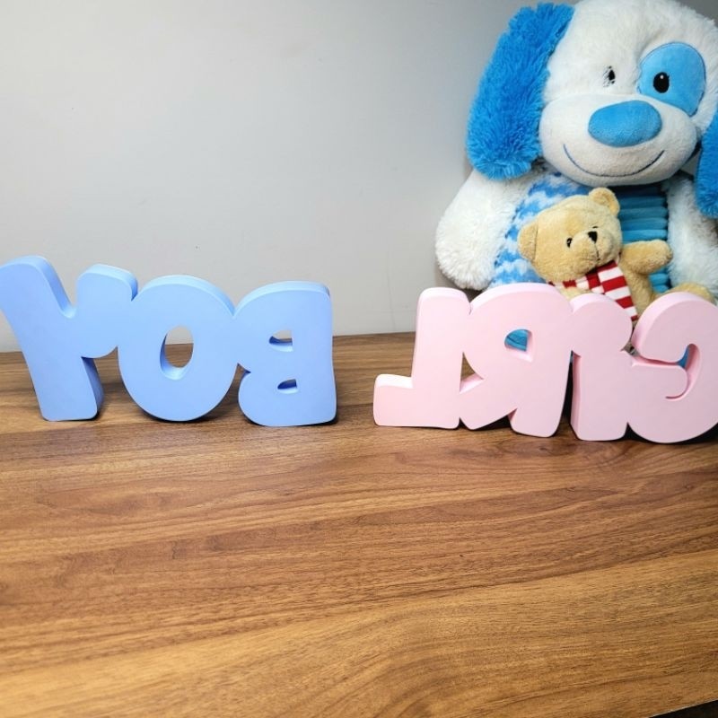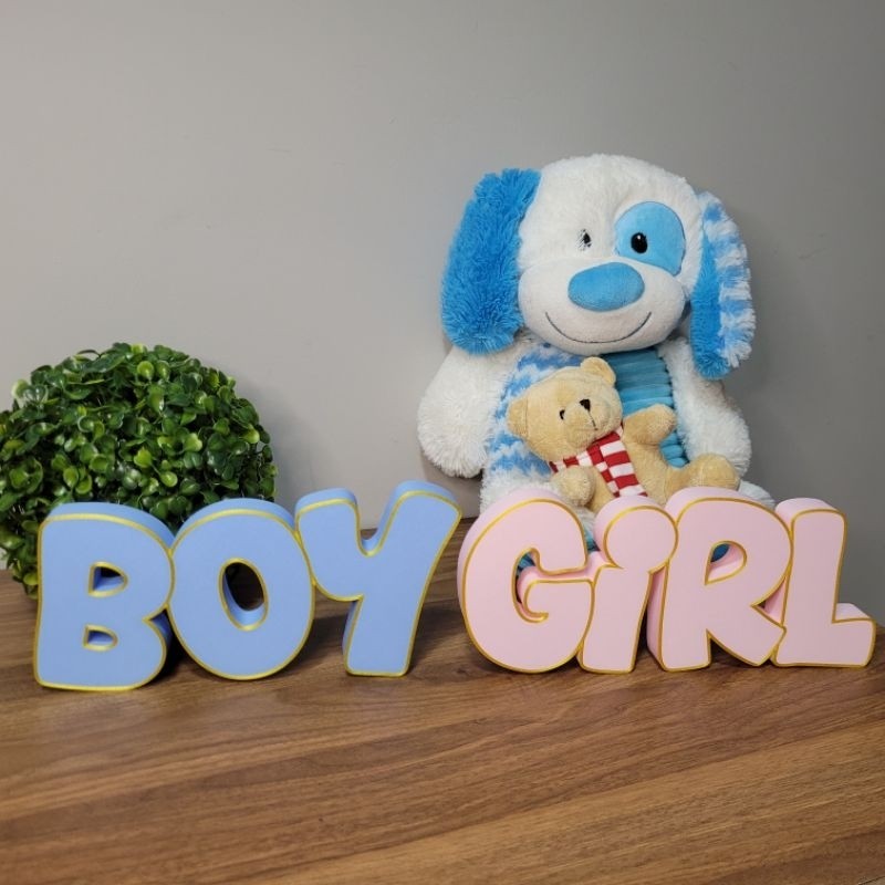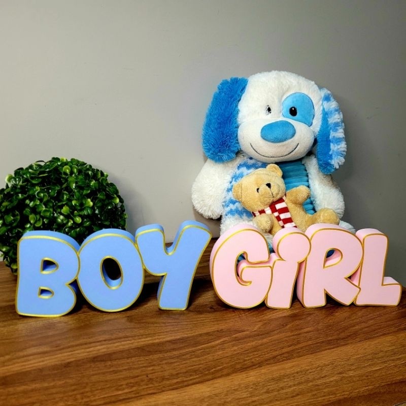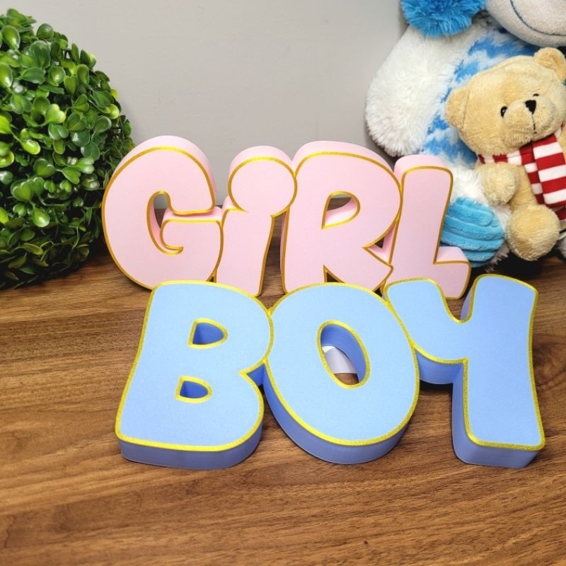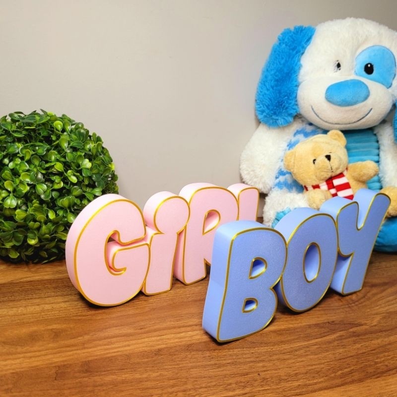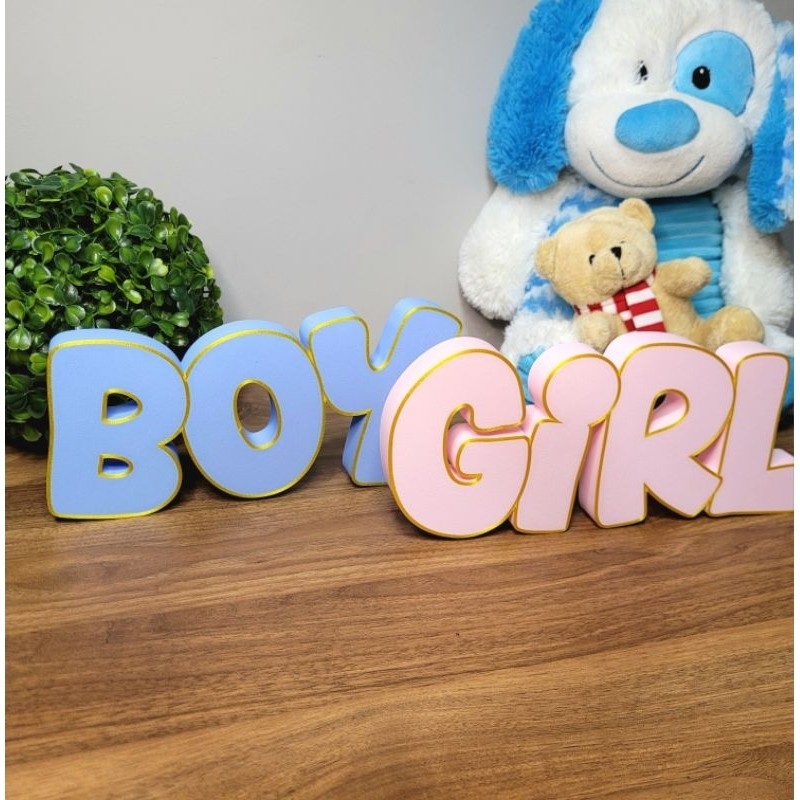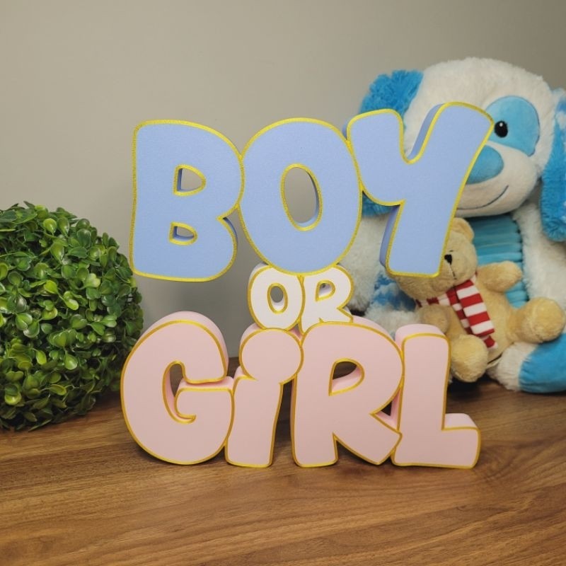 Boy or Girl - Letreiro para Chá Revelação, Azul Rosa Bebê, Decoração