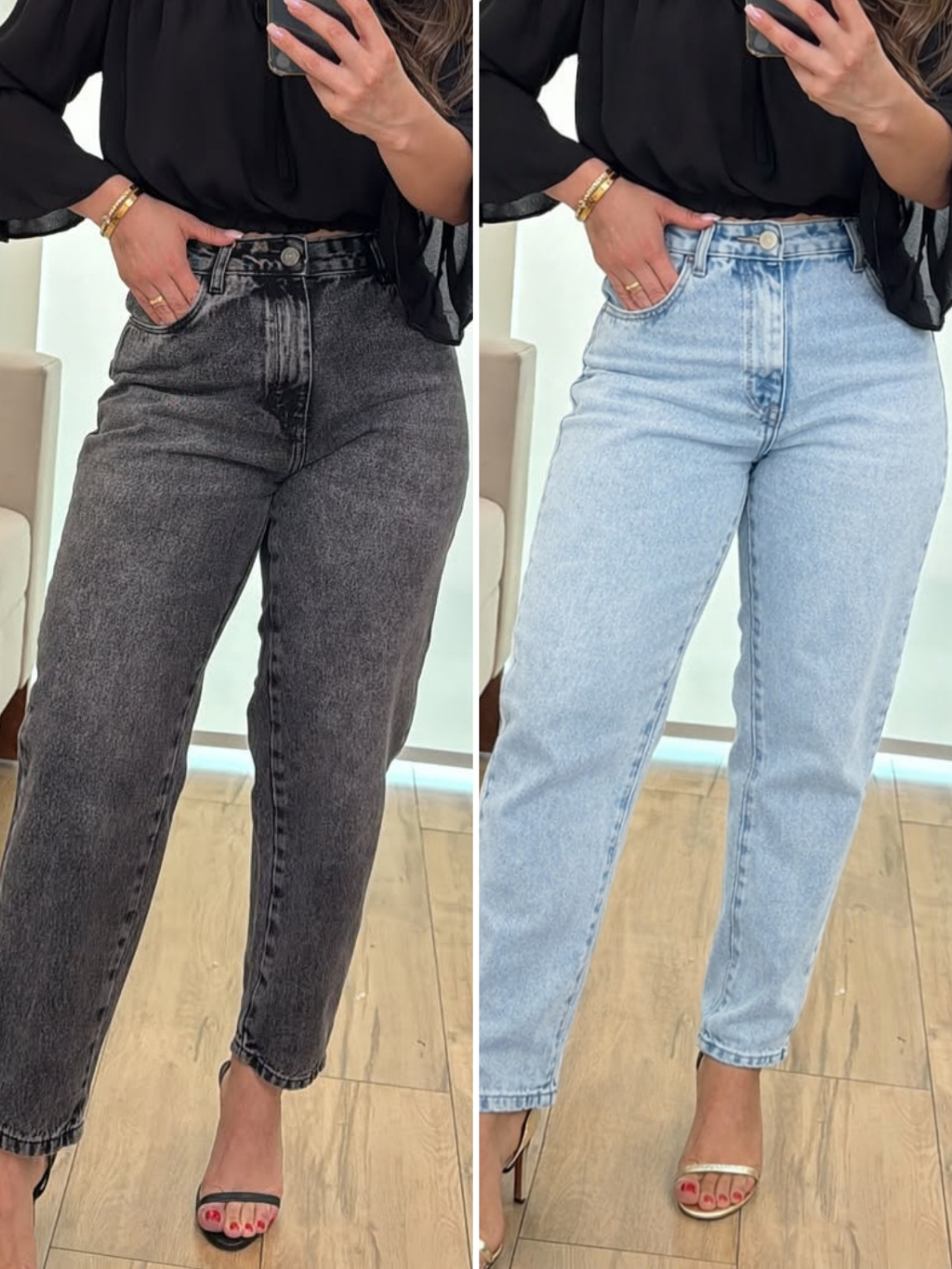 KIT 2 Calça Jeans MOM Feminina Cintura Alta Qualidade Premium