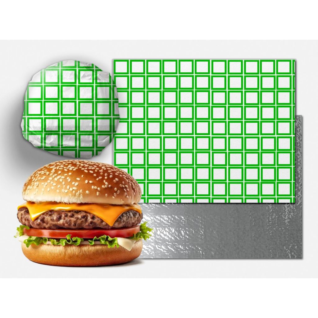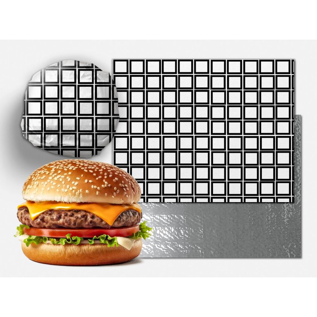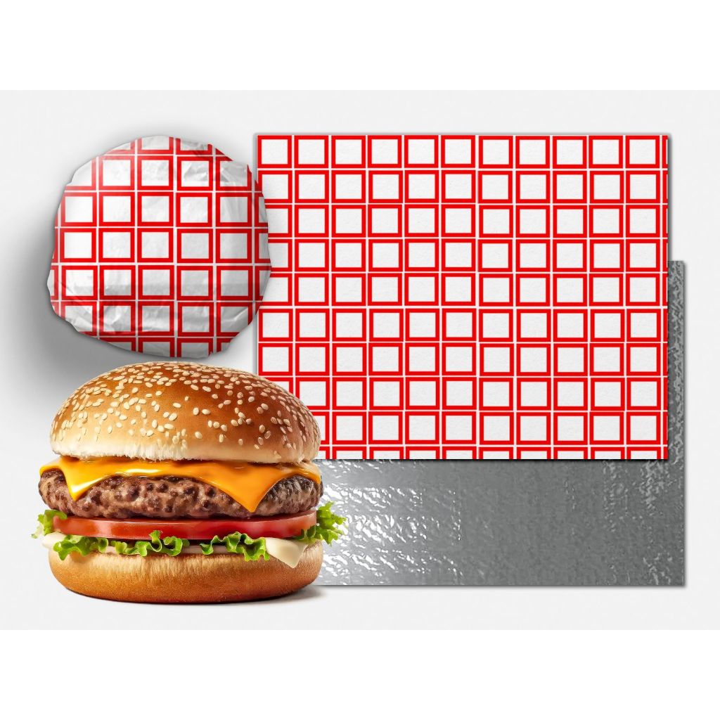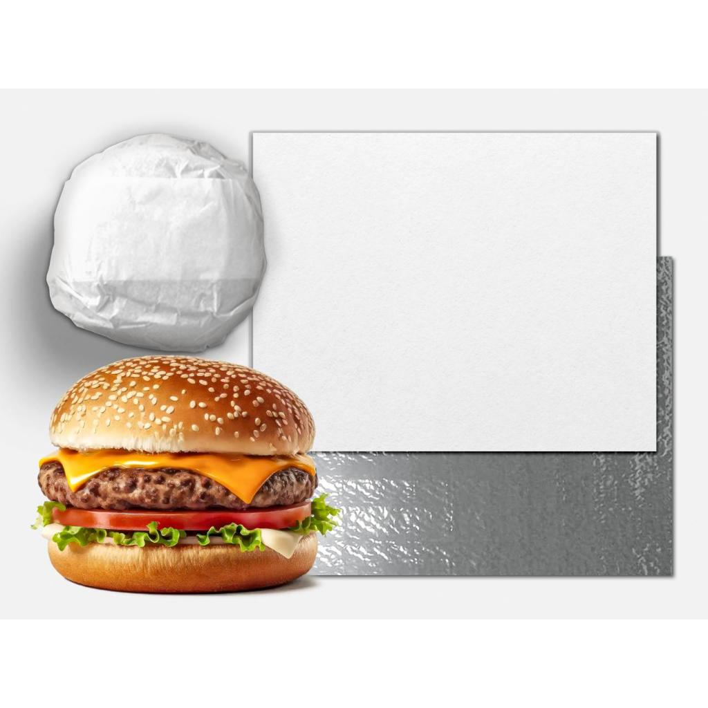 500 papel 33x37 acoplado térmico laminado metalizado anti gordura burguer burger hamburguer