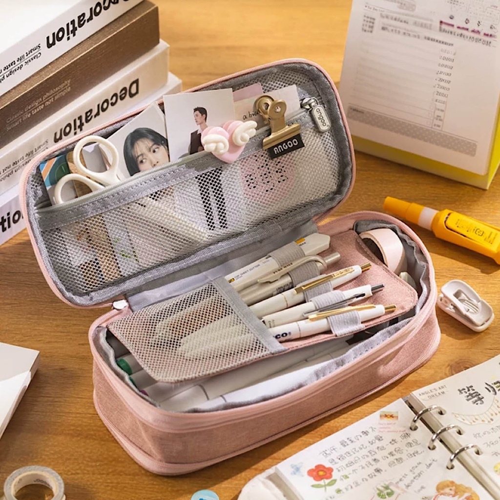 Estojo De Lápis De Tecido De Grande Capacidade Camada /Double Sided Pen Bag Pencil Case/Escolar