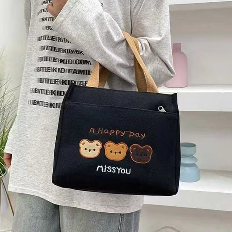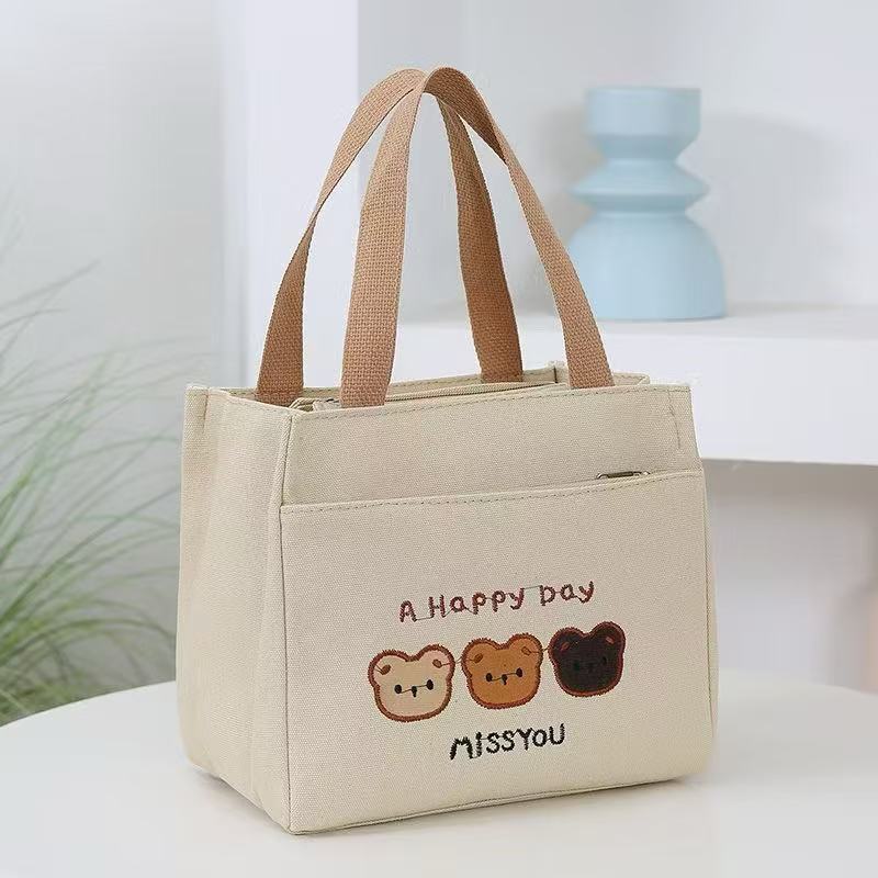 Bolsa Termica de Lona Ursinho design Capacidade Adequada Para Marmita-LUNA