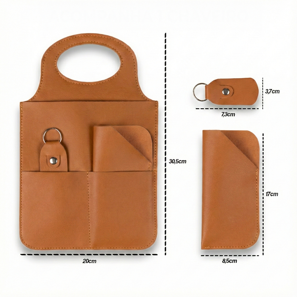 Kit Lixeira Para Carro Couro Luxo 3 em 1 Porta Óculos Chaveiro Organizador Automotivo Universal Top