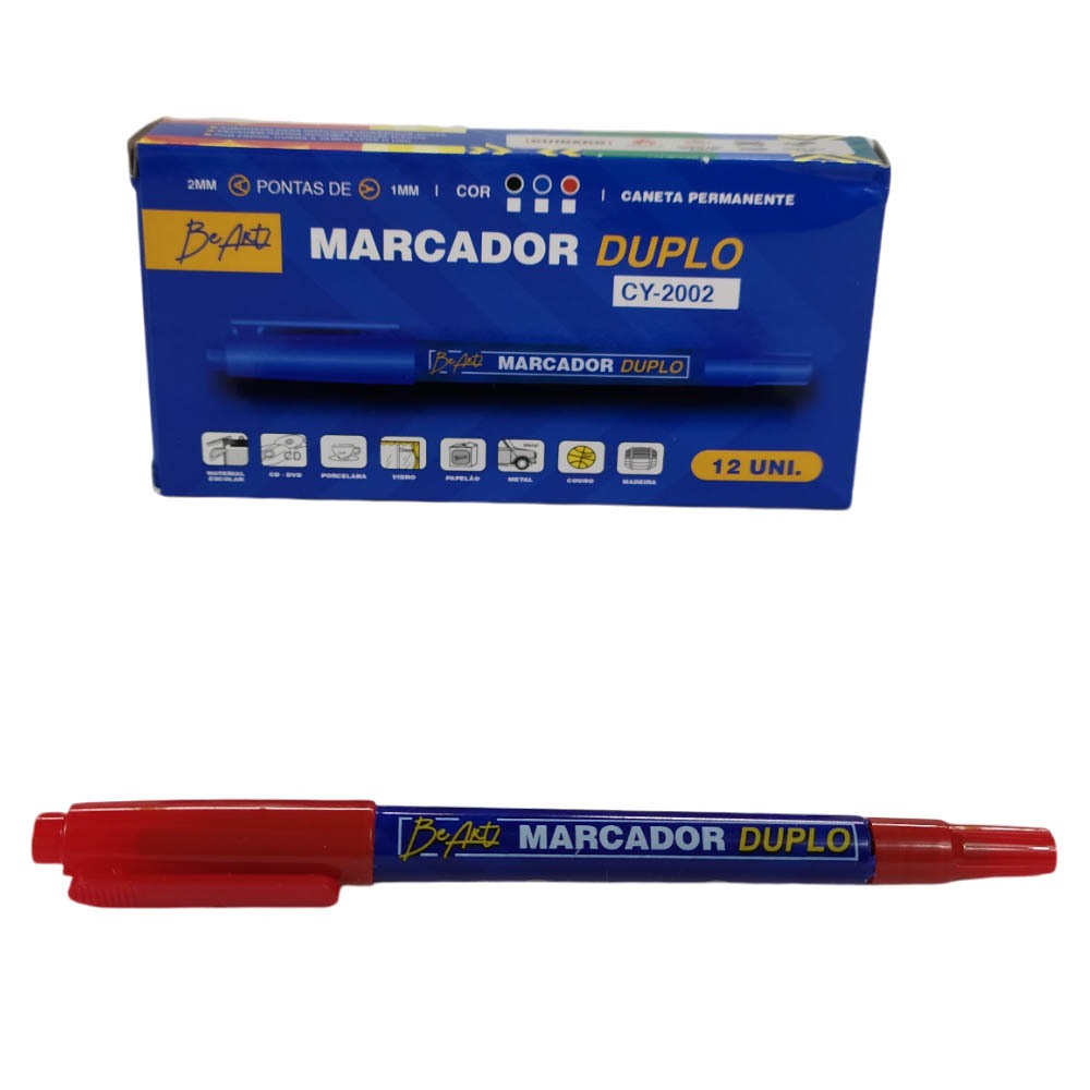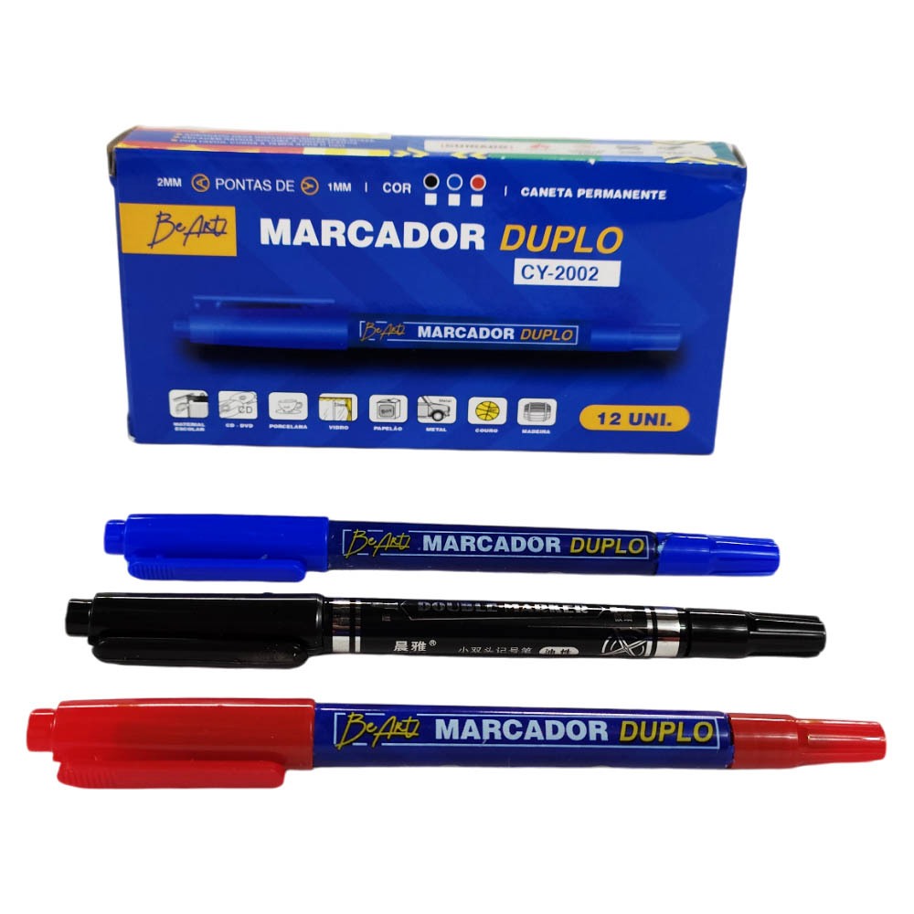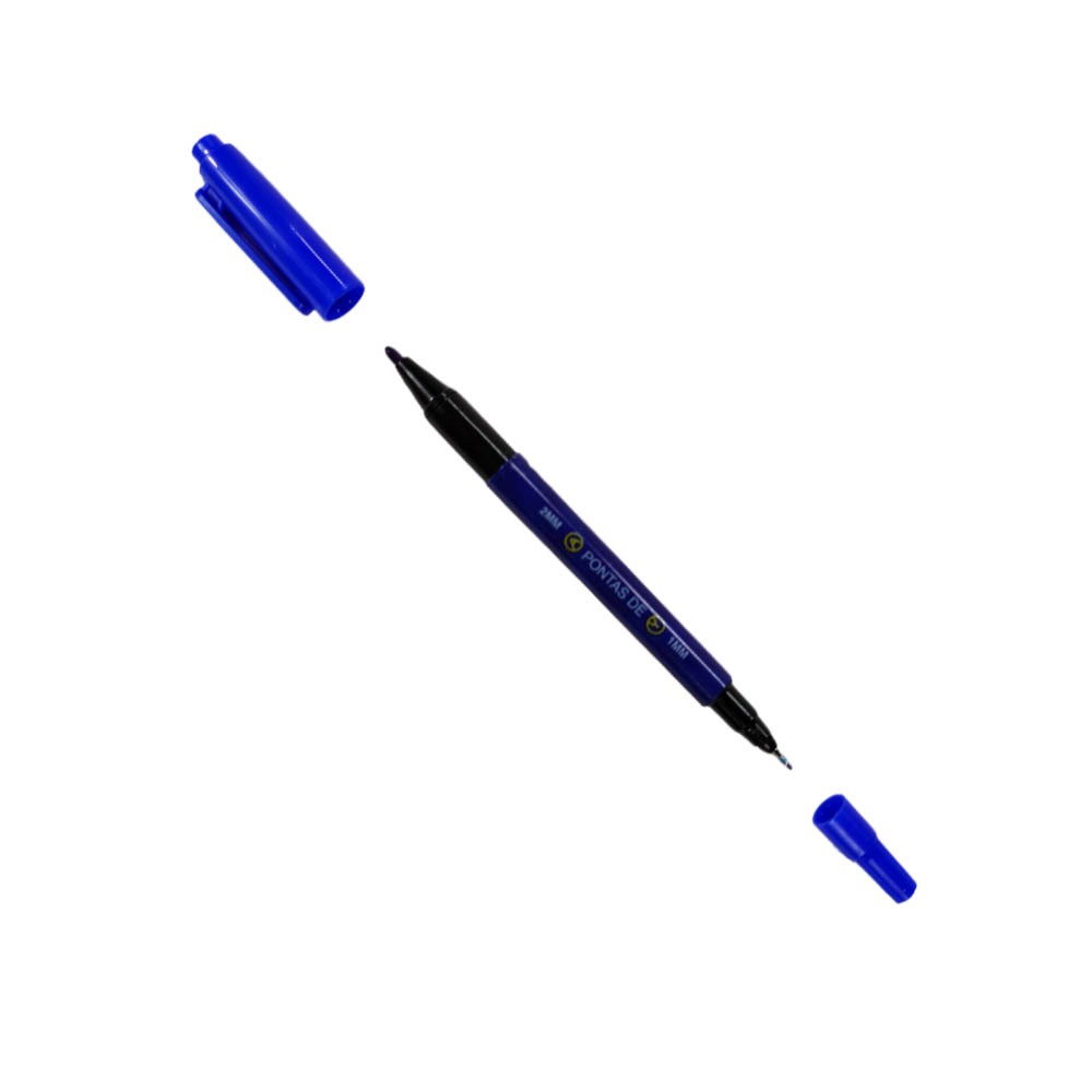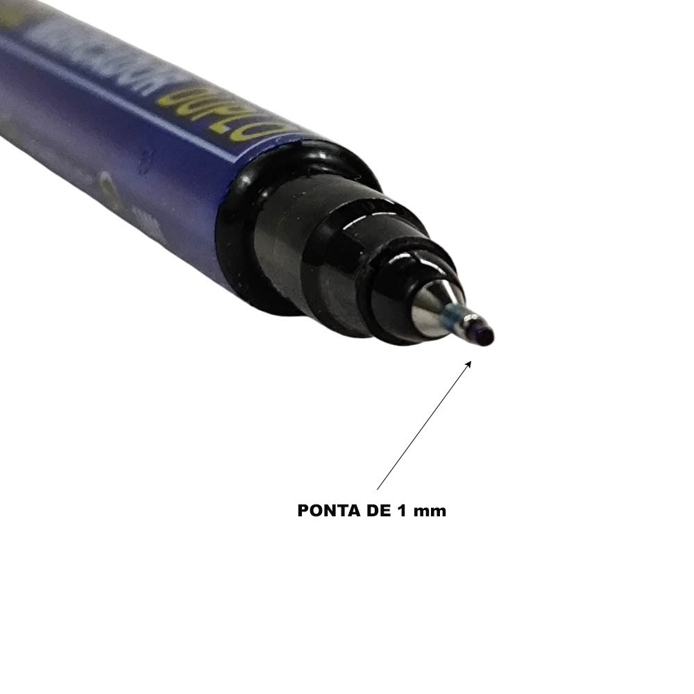Kit Caneta Permanente Ponta Dupla Marcador Retroprojetor CD/DVD Plastico Metal 0.4mm e Grossa 2mm