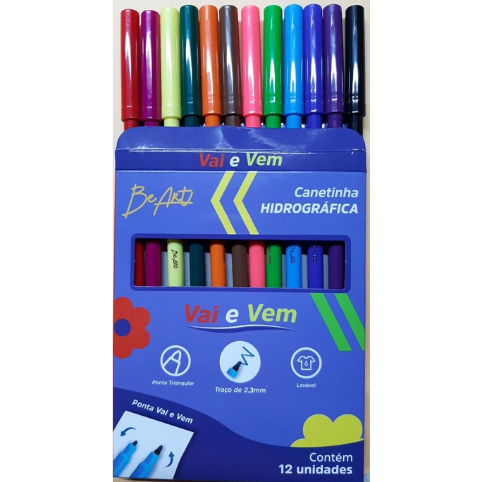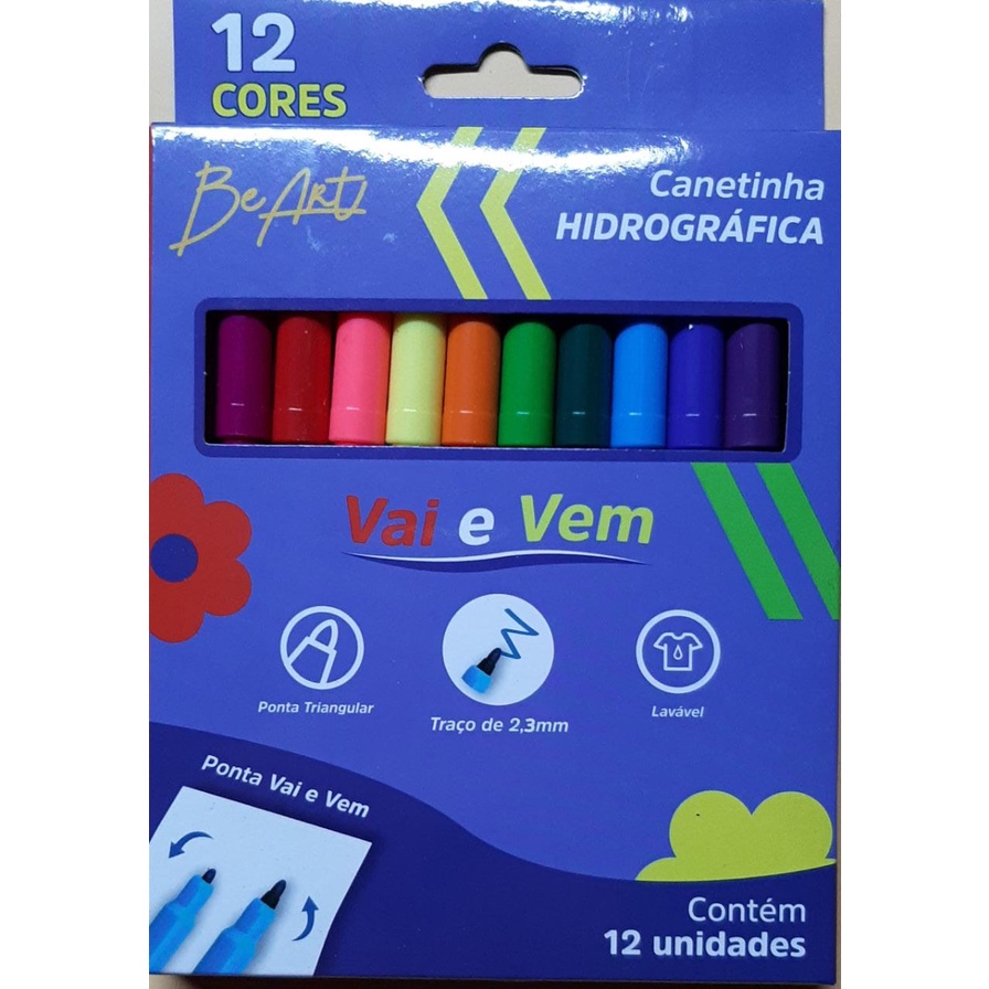 Canetinha Hidrocor 12cores Ponta Vai e Vem em Nylon Hidrografica Material Escolar