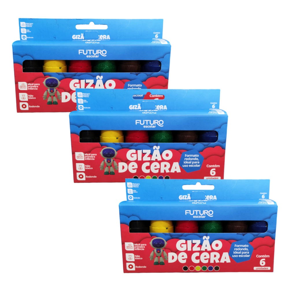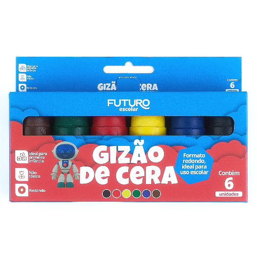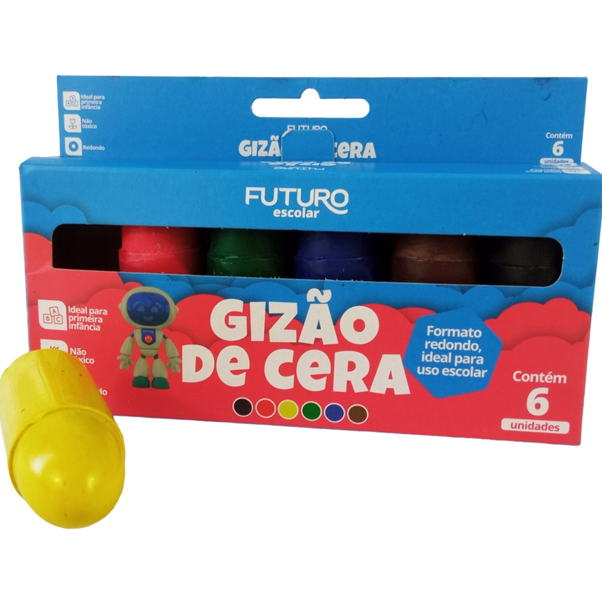 Gizao de Cera Meu Primeiro Giz 6 Cores Big Jumbo Grosso Escolar