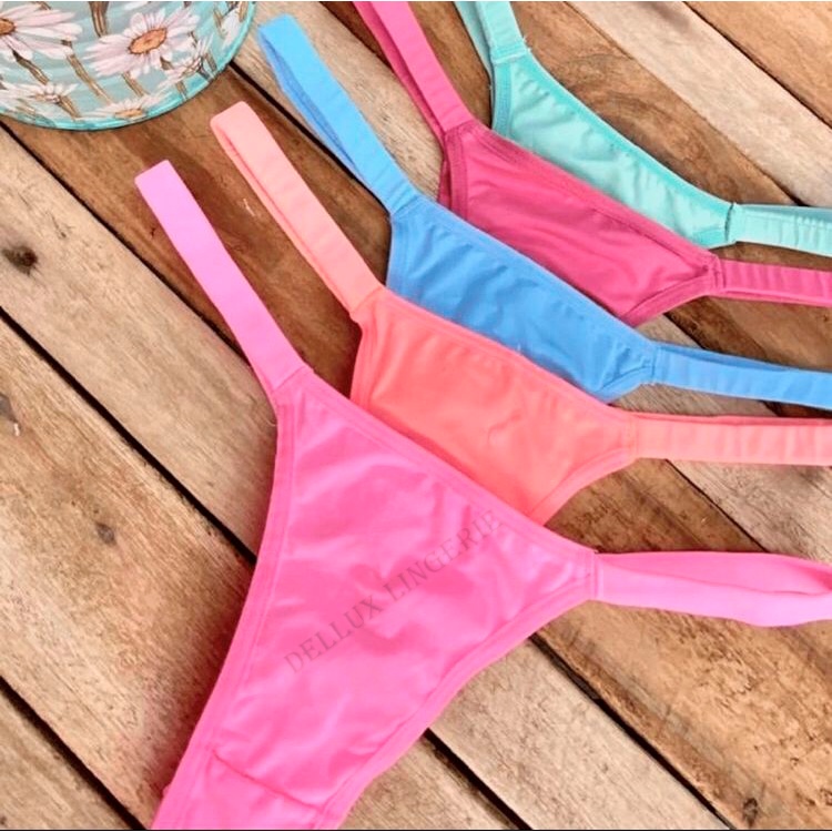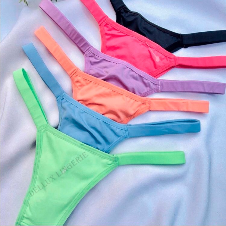 Promoção Kit 5 Tangas Fio Duplo Com Tirinhas Coloridas Sexy Microfibra