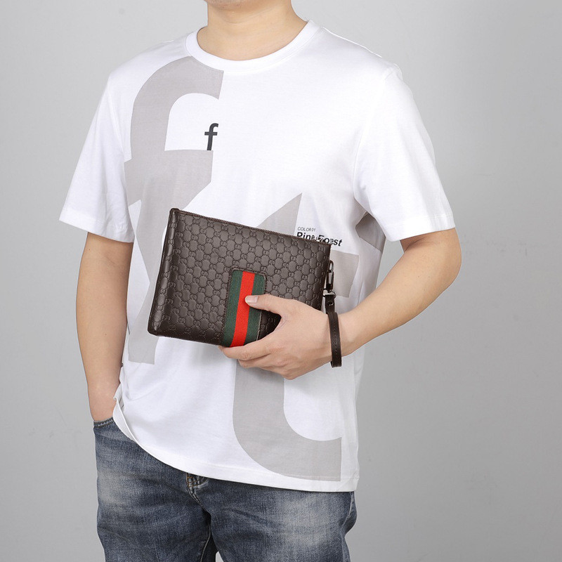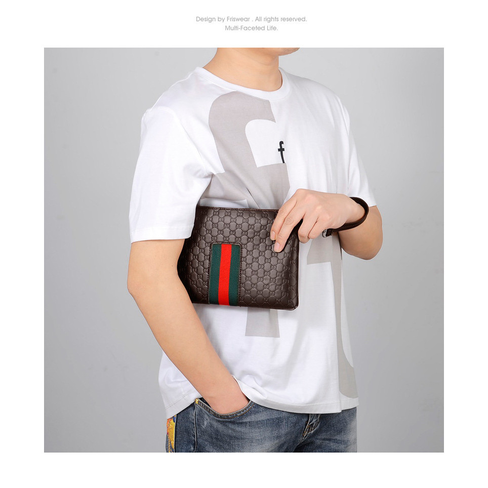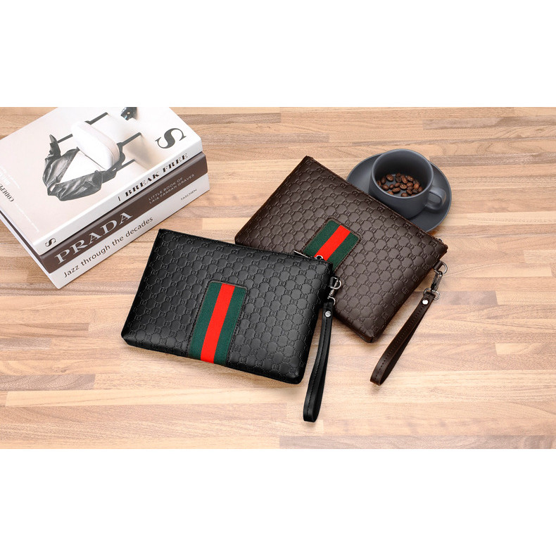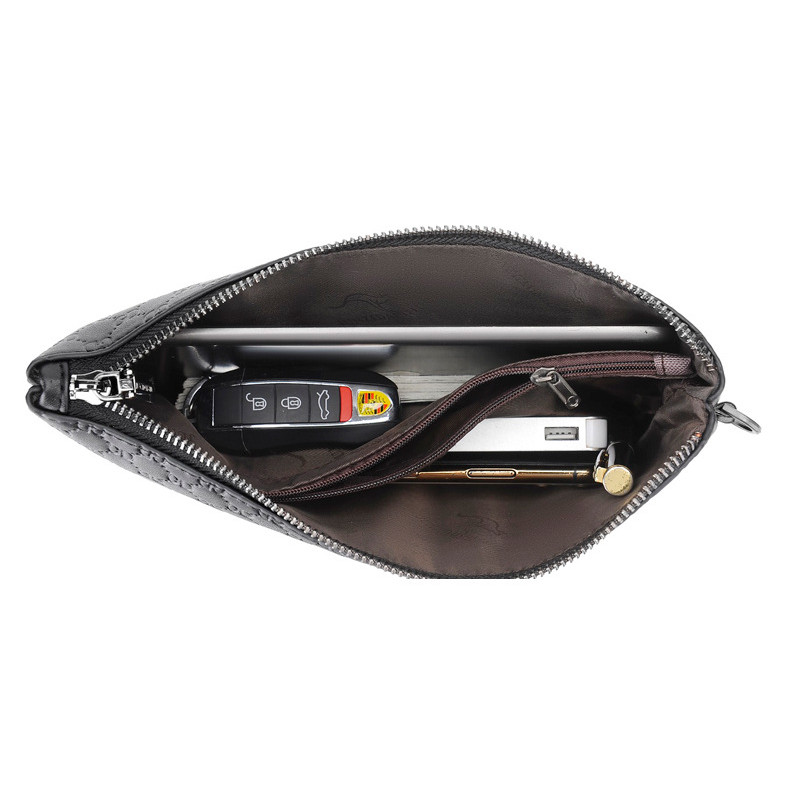 Bolsa de mão de homem com zíper de negócios carteira de couro dos homens grande