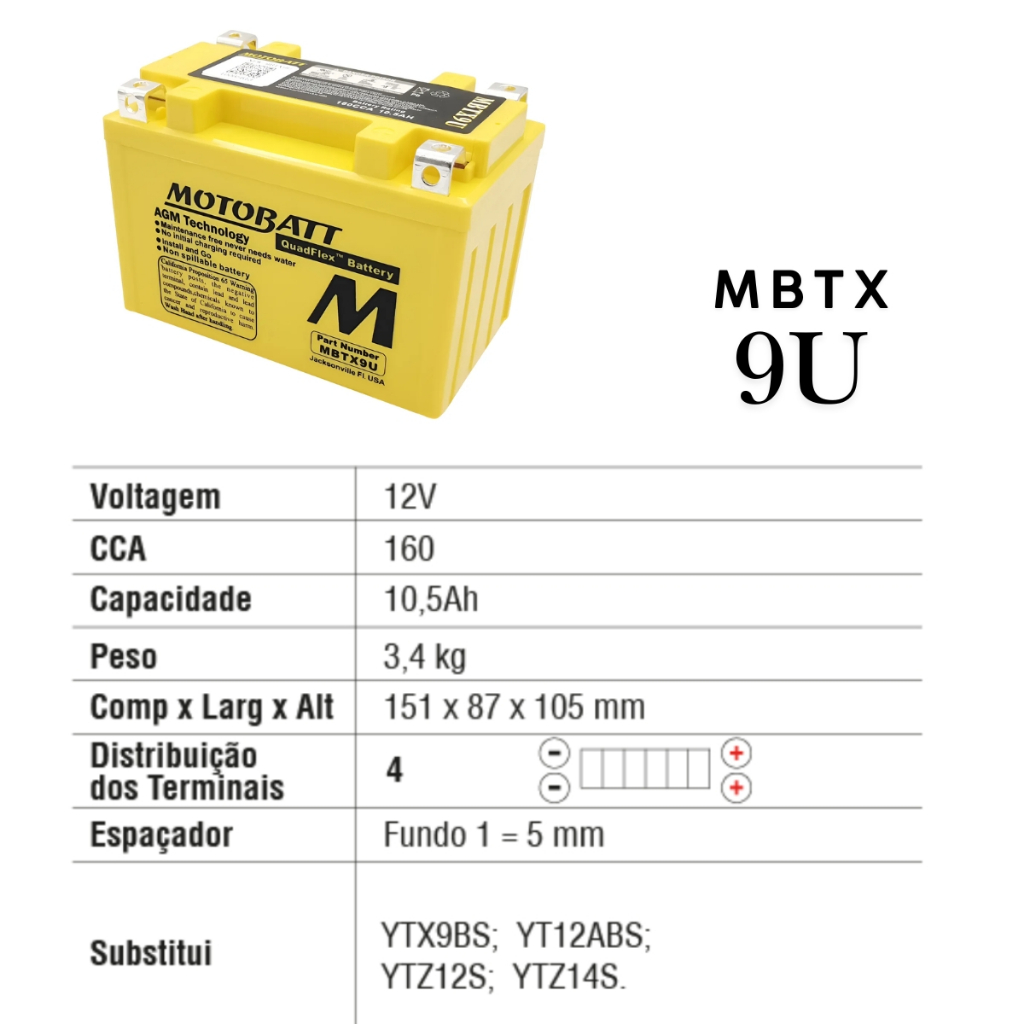 Bateria Motobatt Mbtx9u 10,5ah Cb 500 Cb500 Shadow 600 750 Ytz14s Yamaha Xvs950 Midnight Star