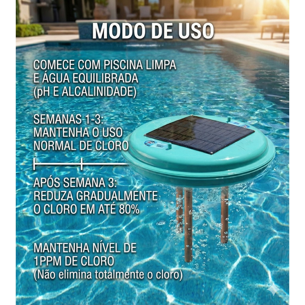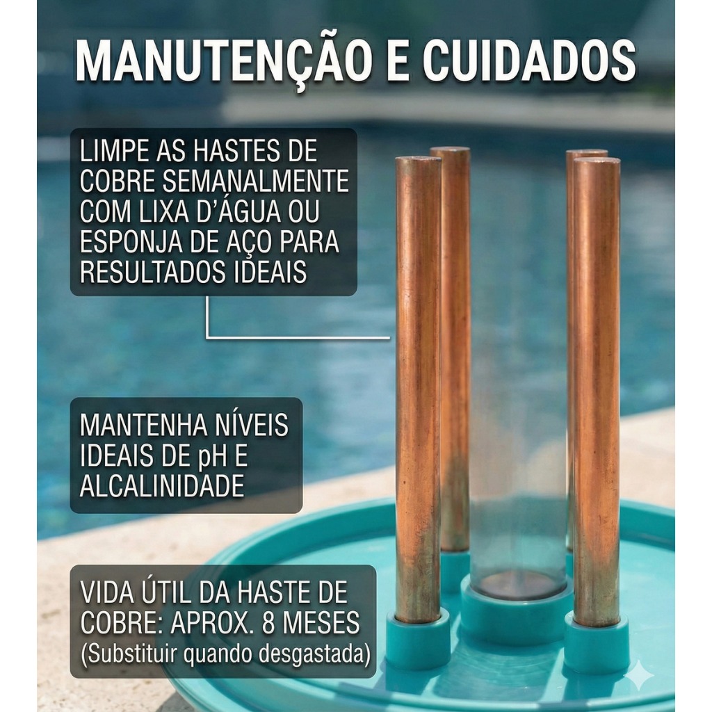 Ionizador Solar 60.000l Piscina Limpa Sem Cloro Pousada Economia Casa Eficiente Haste Cobre Tratamento Sustentável Algas