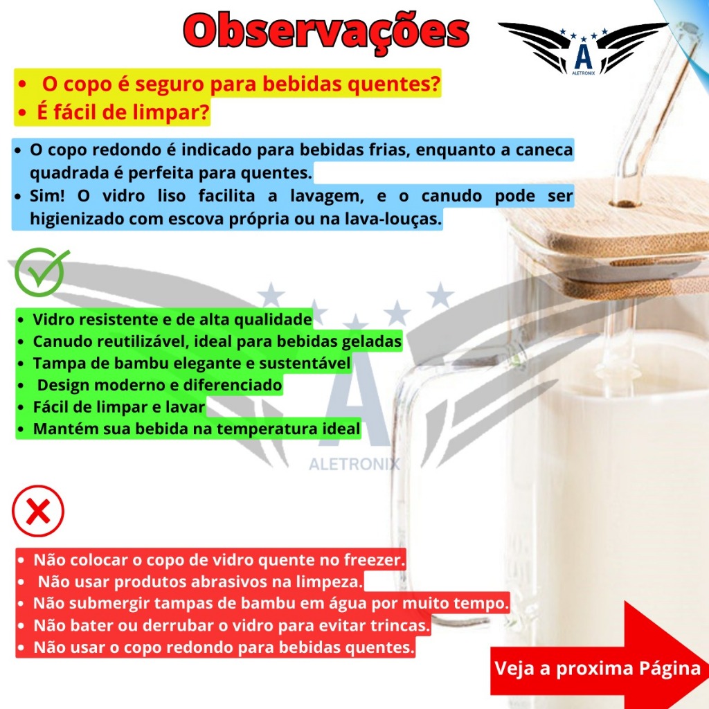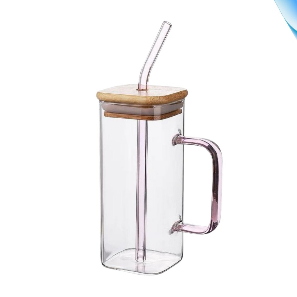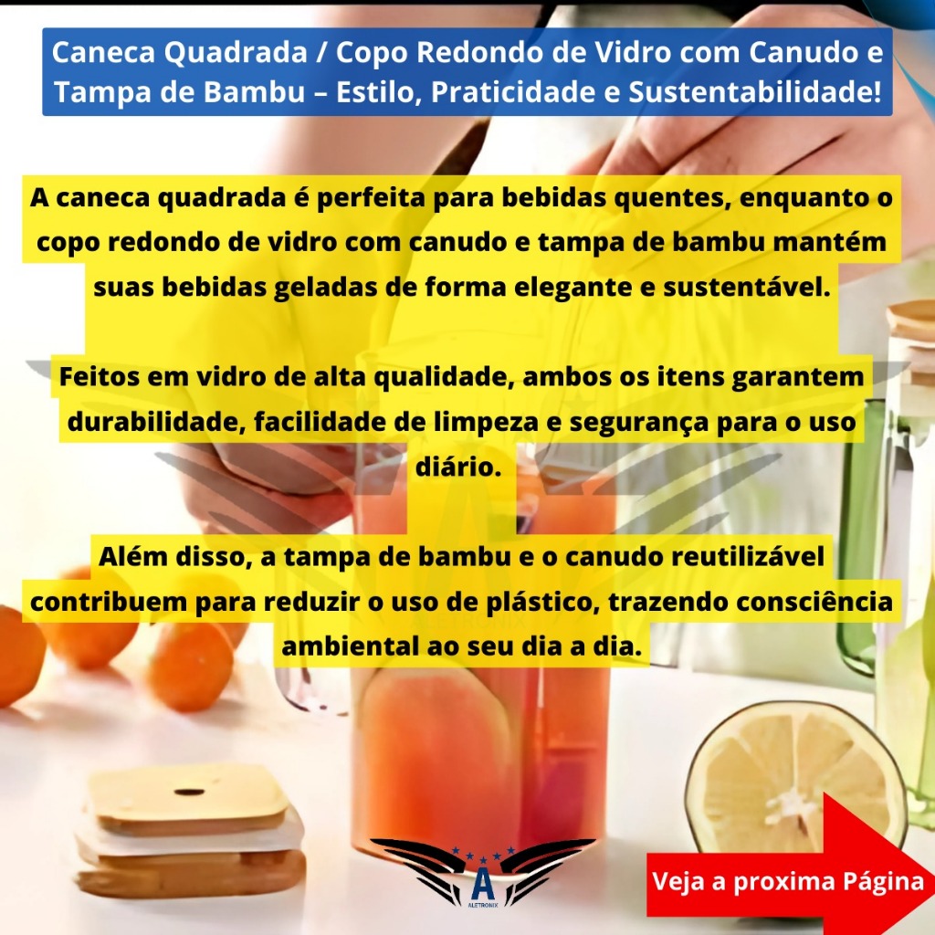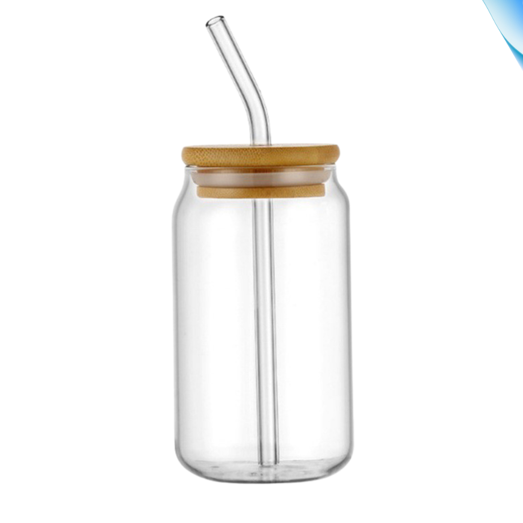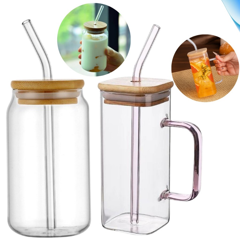 Kit 2 Canecas Vidro Tampa de Bambu Canudo Borossilicato Copo Drink Café Iced Coffee Premium 600ml 300ml