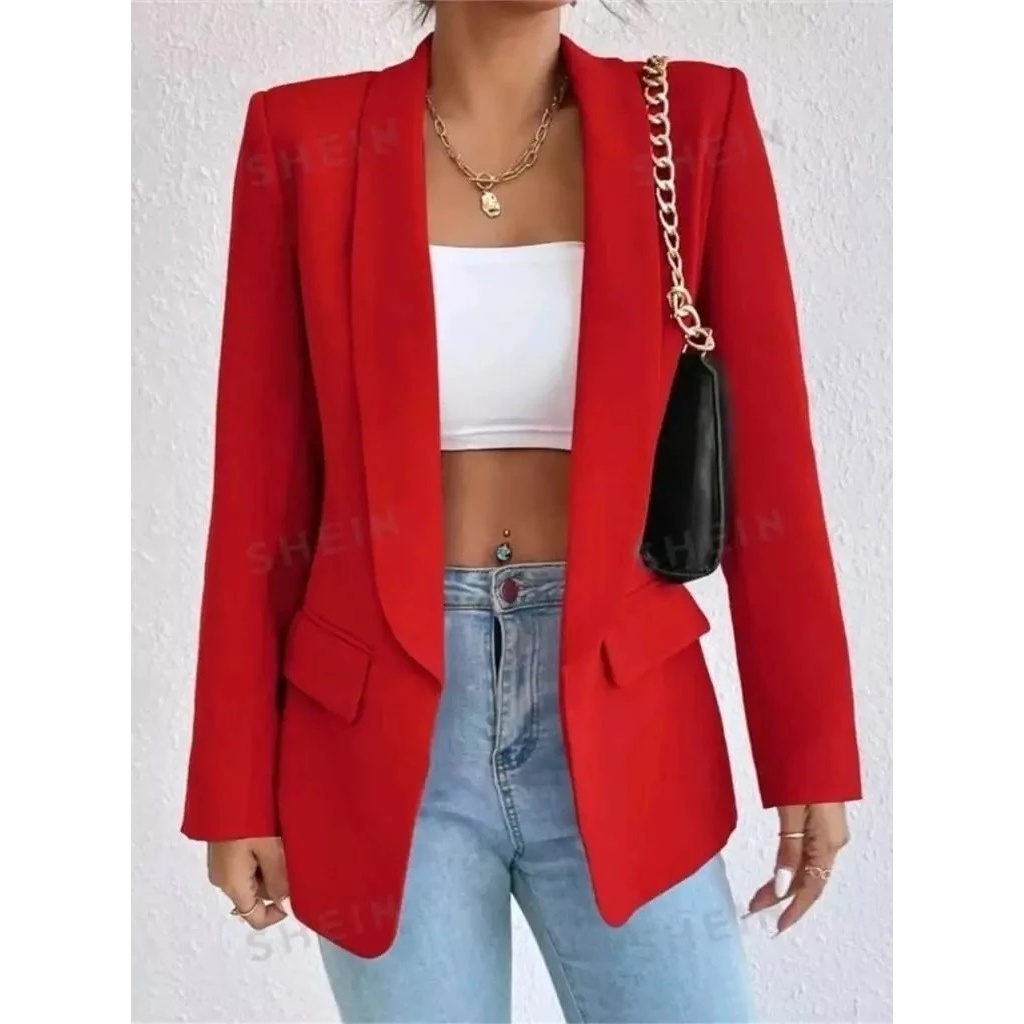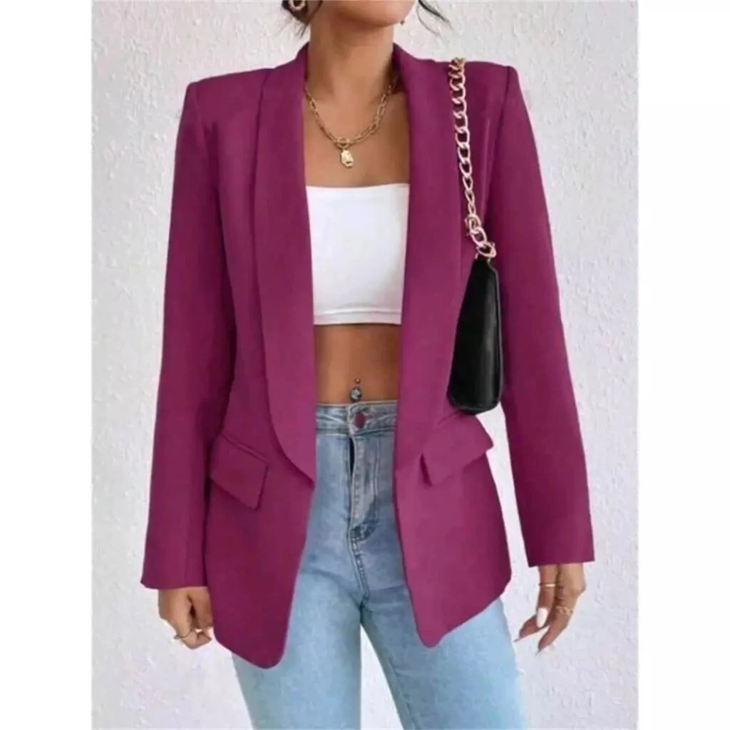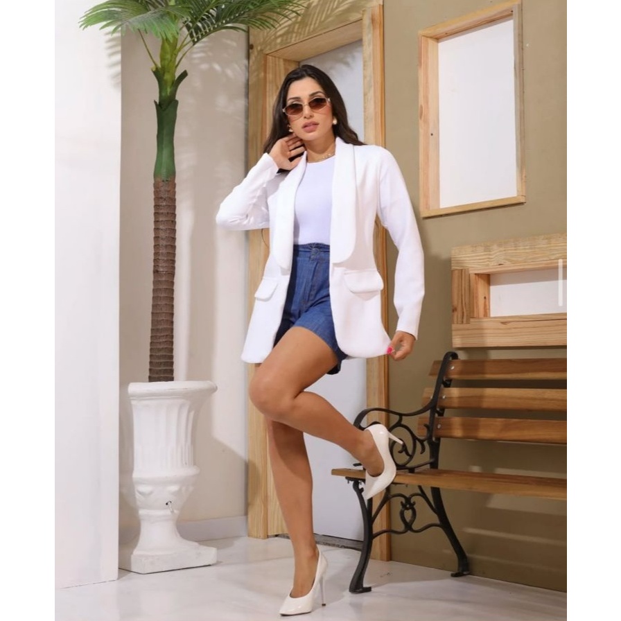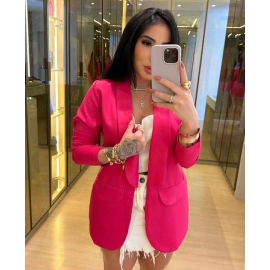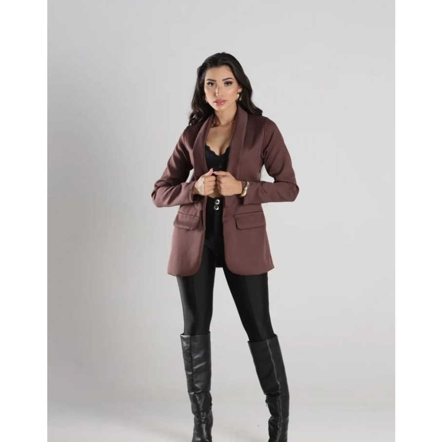 Blazer Feminino Alfaiataria Longo Elegante Manga Longa