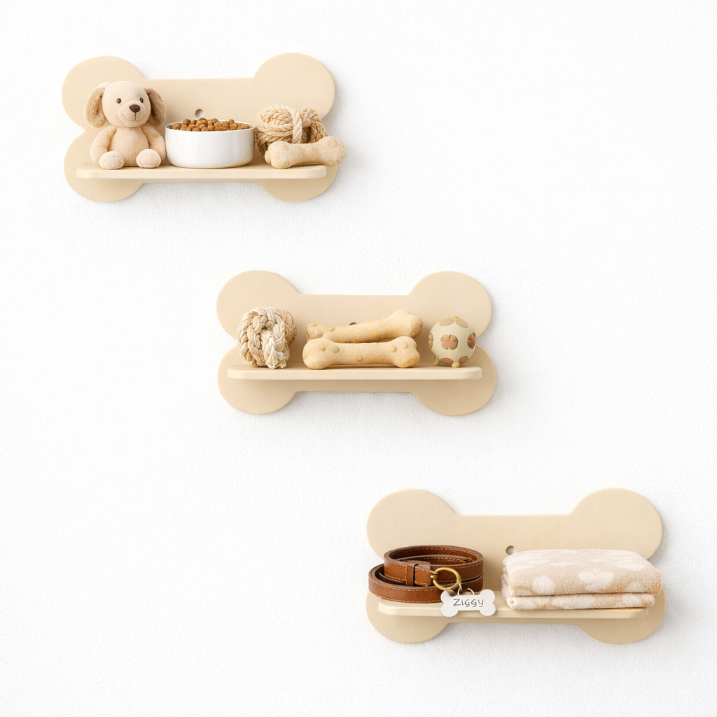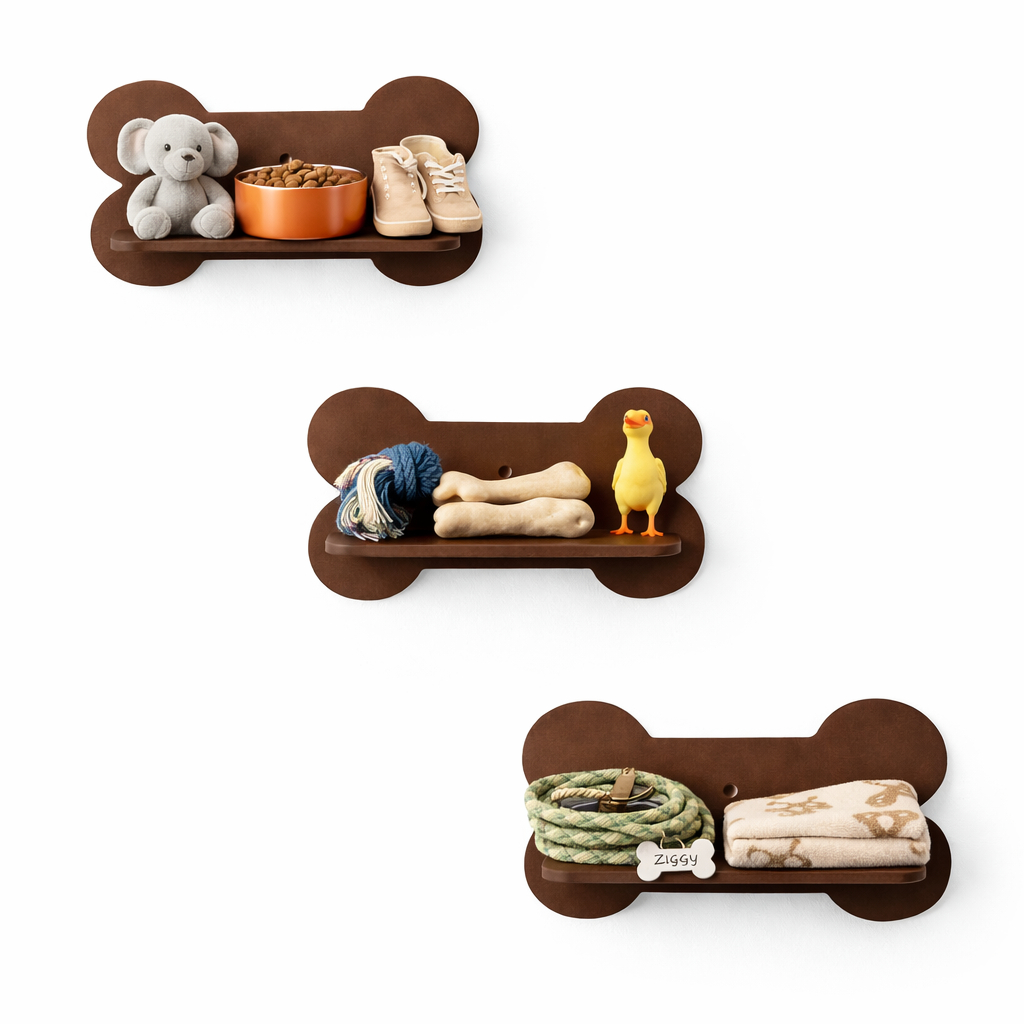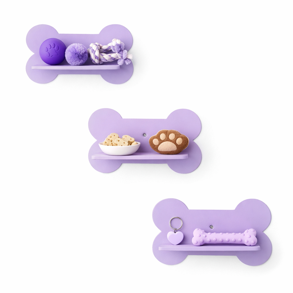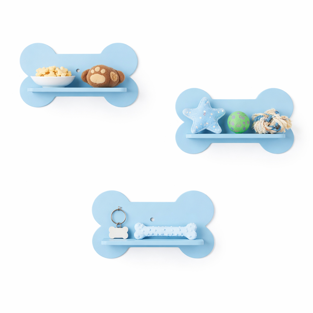Trio de prateleiras ossinhos pet em mdf kit com 3 unidades