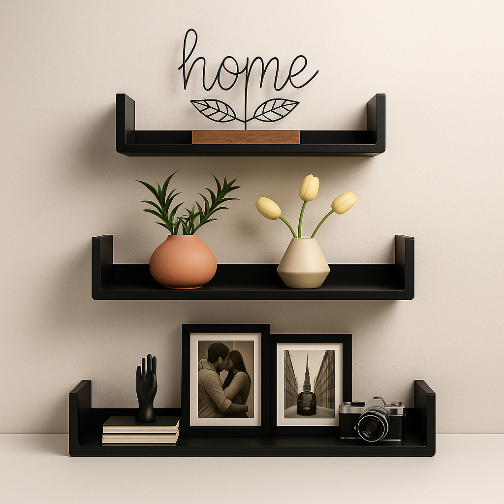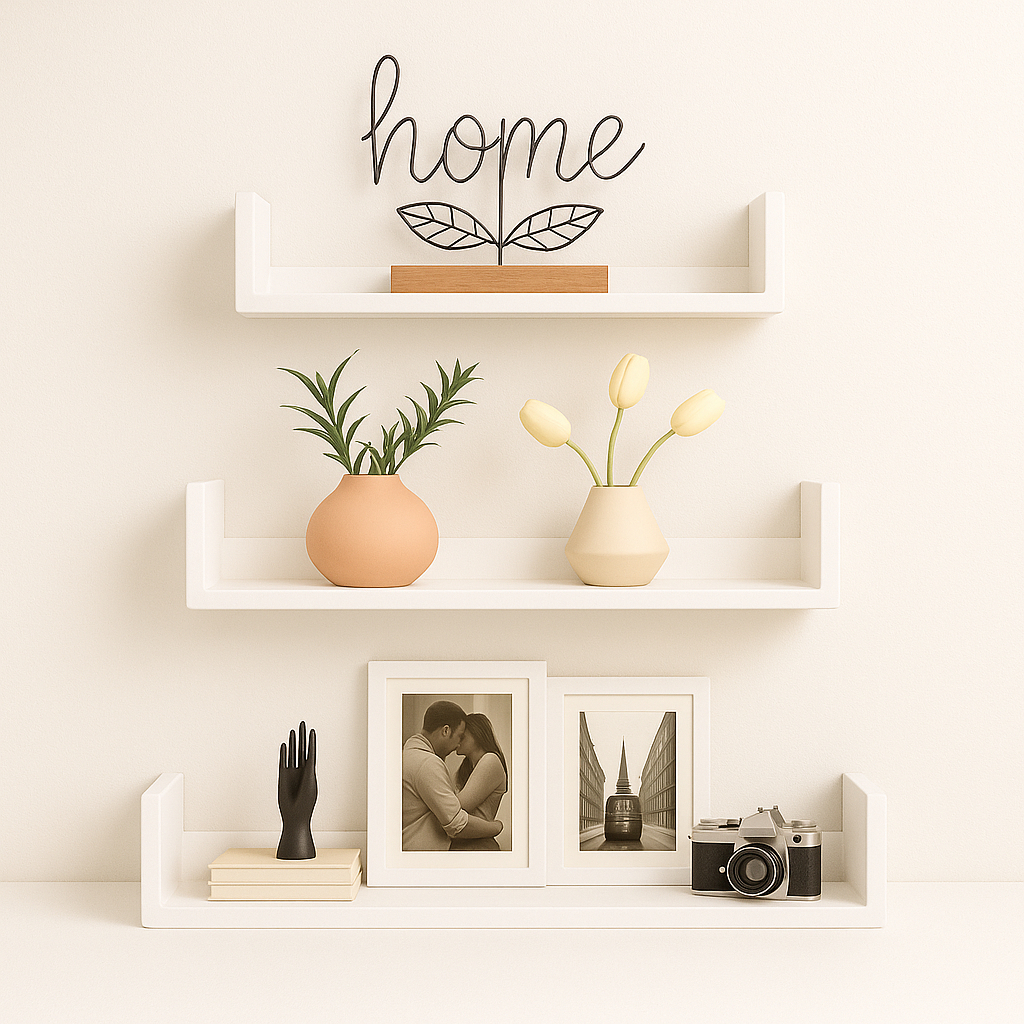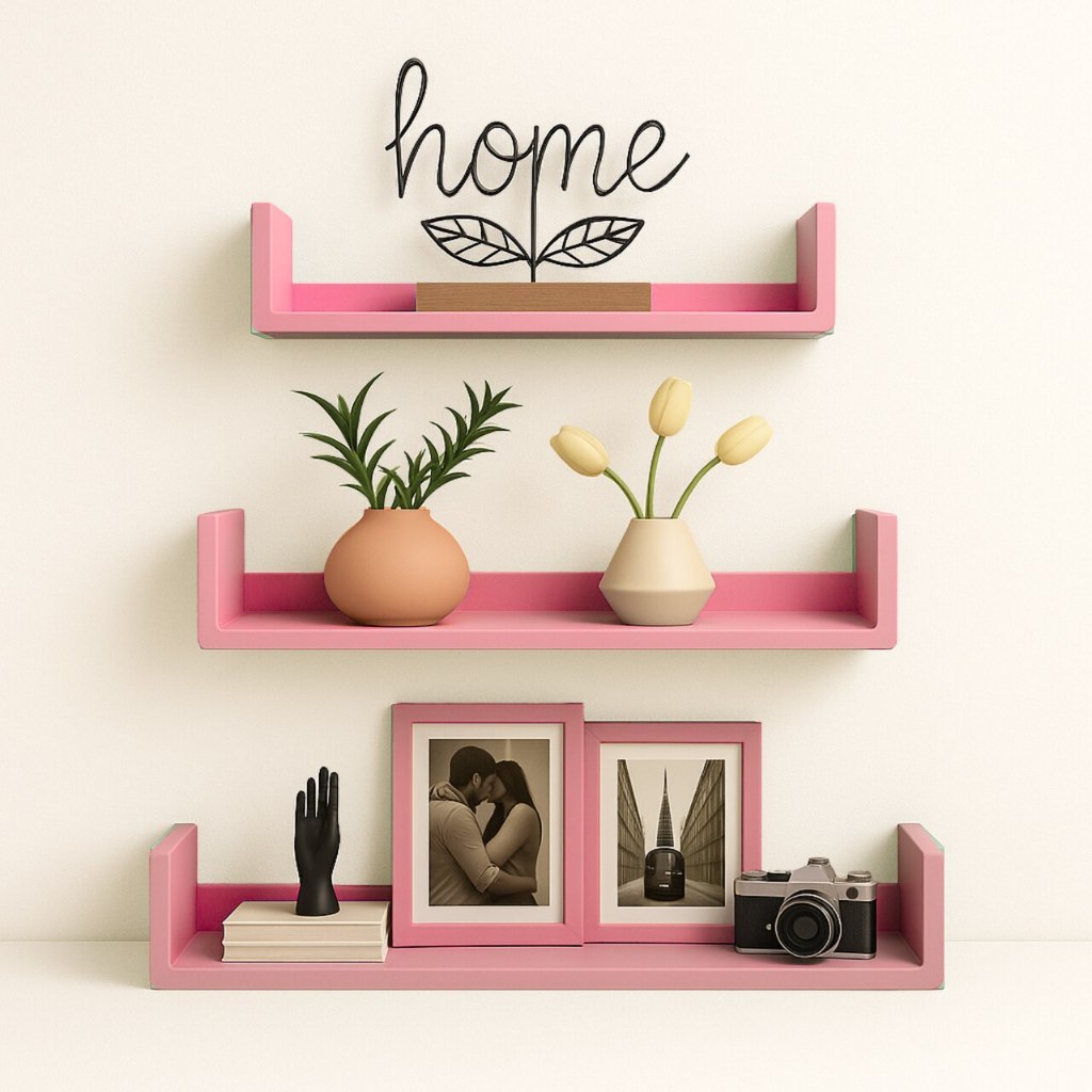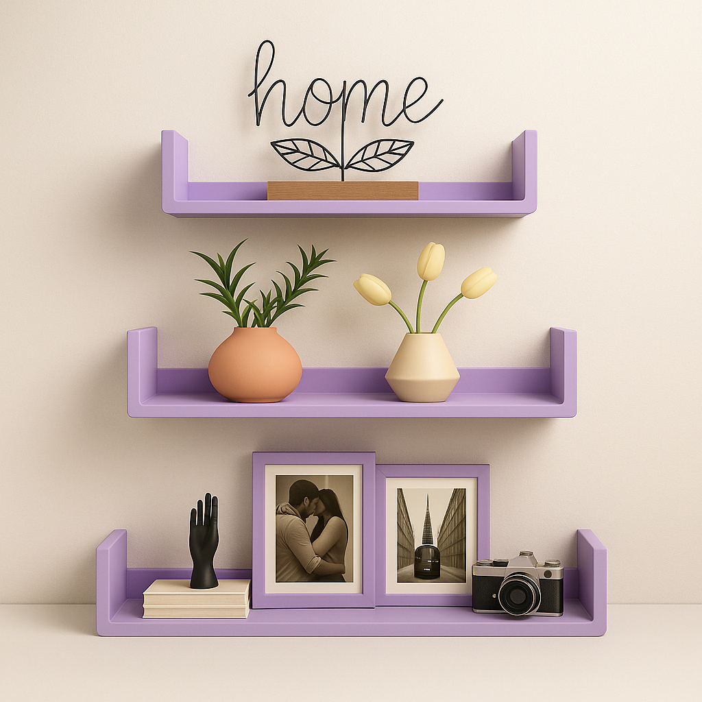 Trio prateleira modelo U em MDF Kit 3 Prateleiras U para Organização de Ambientes