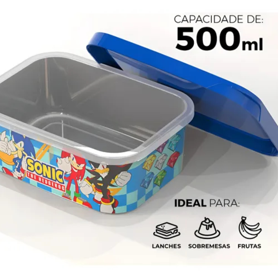 Pote Retangular 500ml Lancheira Infantil Hermético Mantimentos Plástico