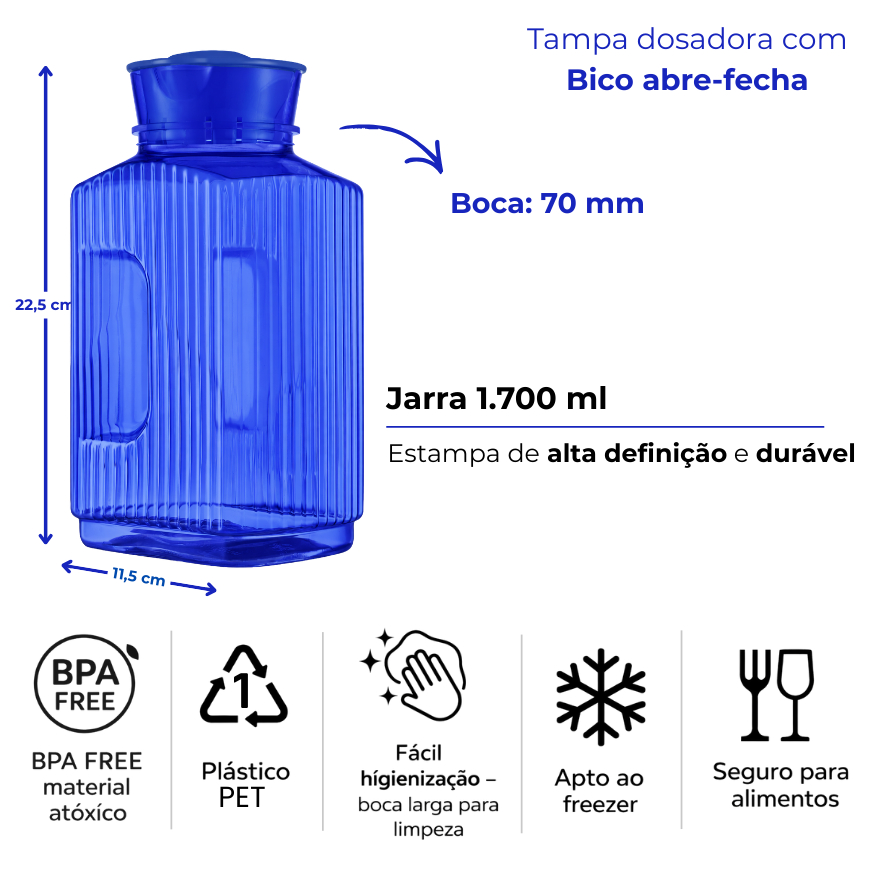 3 Jarra Garrafa De Água Suco Geladeira Tampa Higiênica 1,7lt