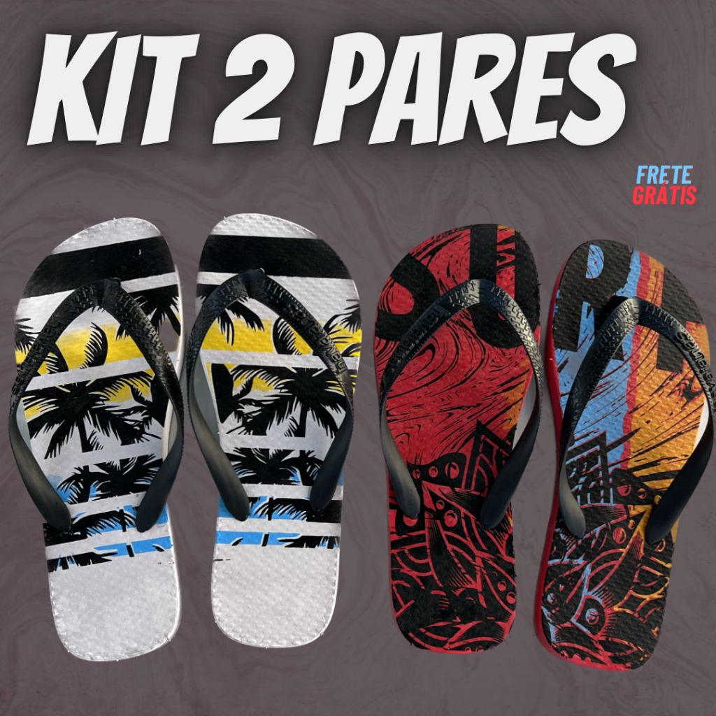 Kit 2 Chinelo Sandália Masculino Promoção Leve Tiras Largas Estampado