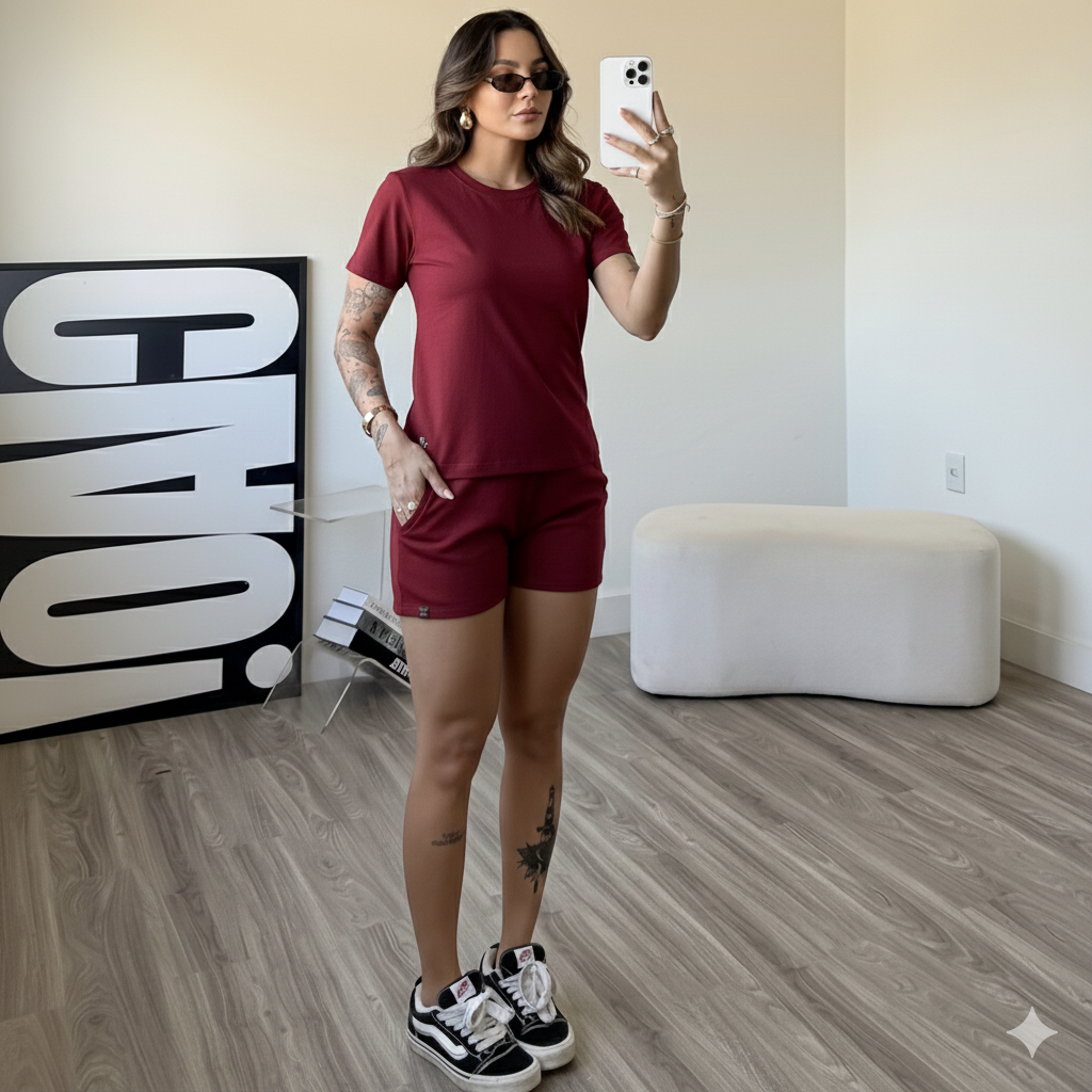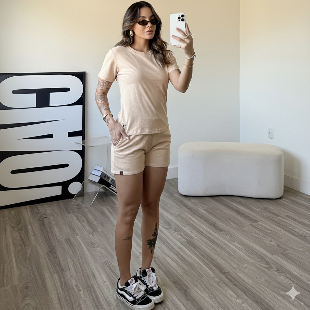 Conjunto Feminino blusa basica camisa básica feminina mais short feminino moletom conjunto feminino basico pra dia a dia