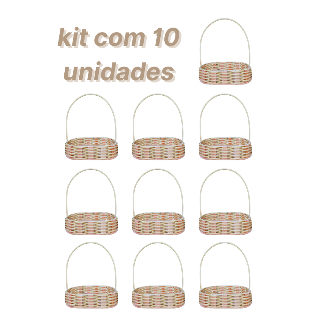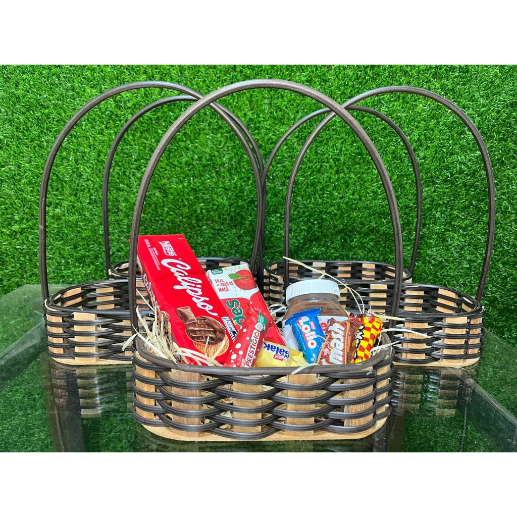 Kit Cestas de Madeira Oval tecido com fita sintética (opcional de 20cm e 25cm de largura)
