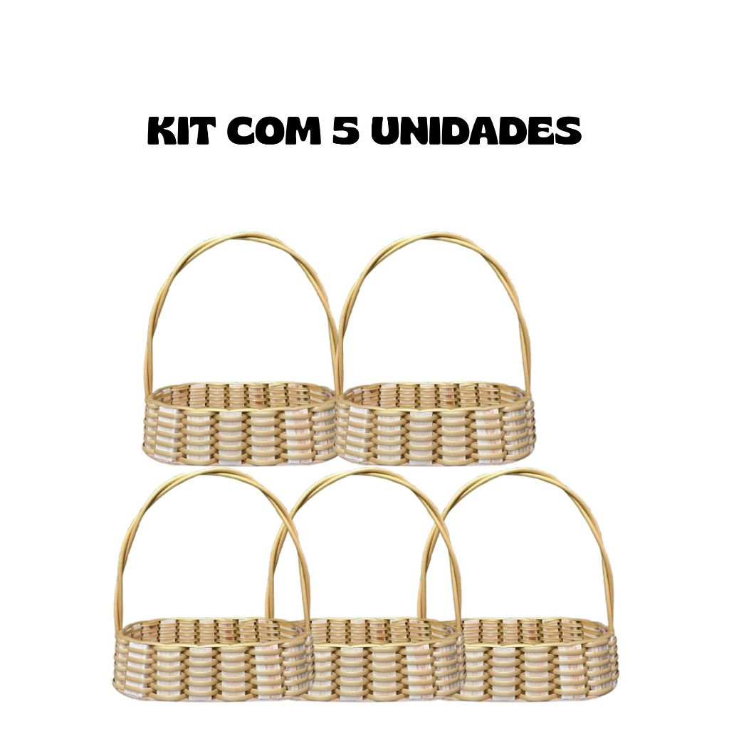 KIT 5 CESTAS FRALDEIRA SINTÉTICA OVAL COM ALÇA FLEXIVEL 30CM