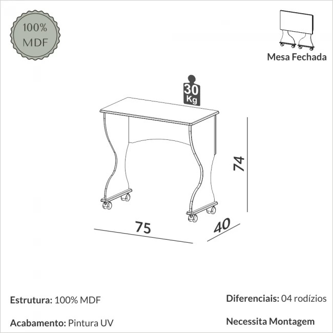 Mesa dobrável portátil para Home Office, cozinha, café, estudo