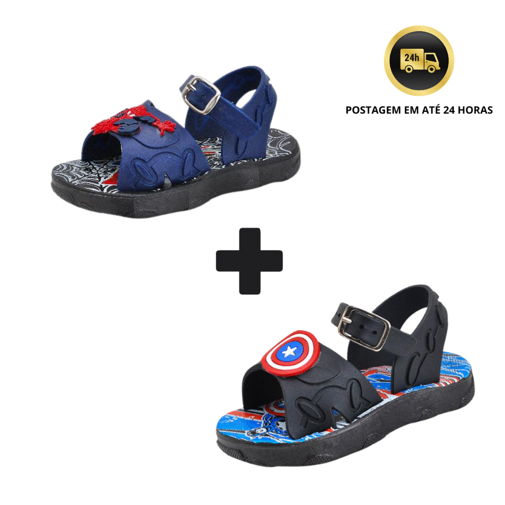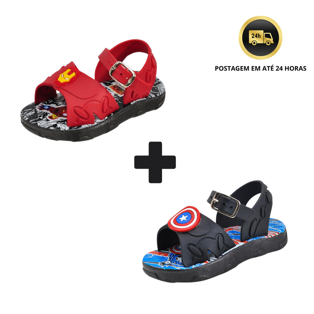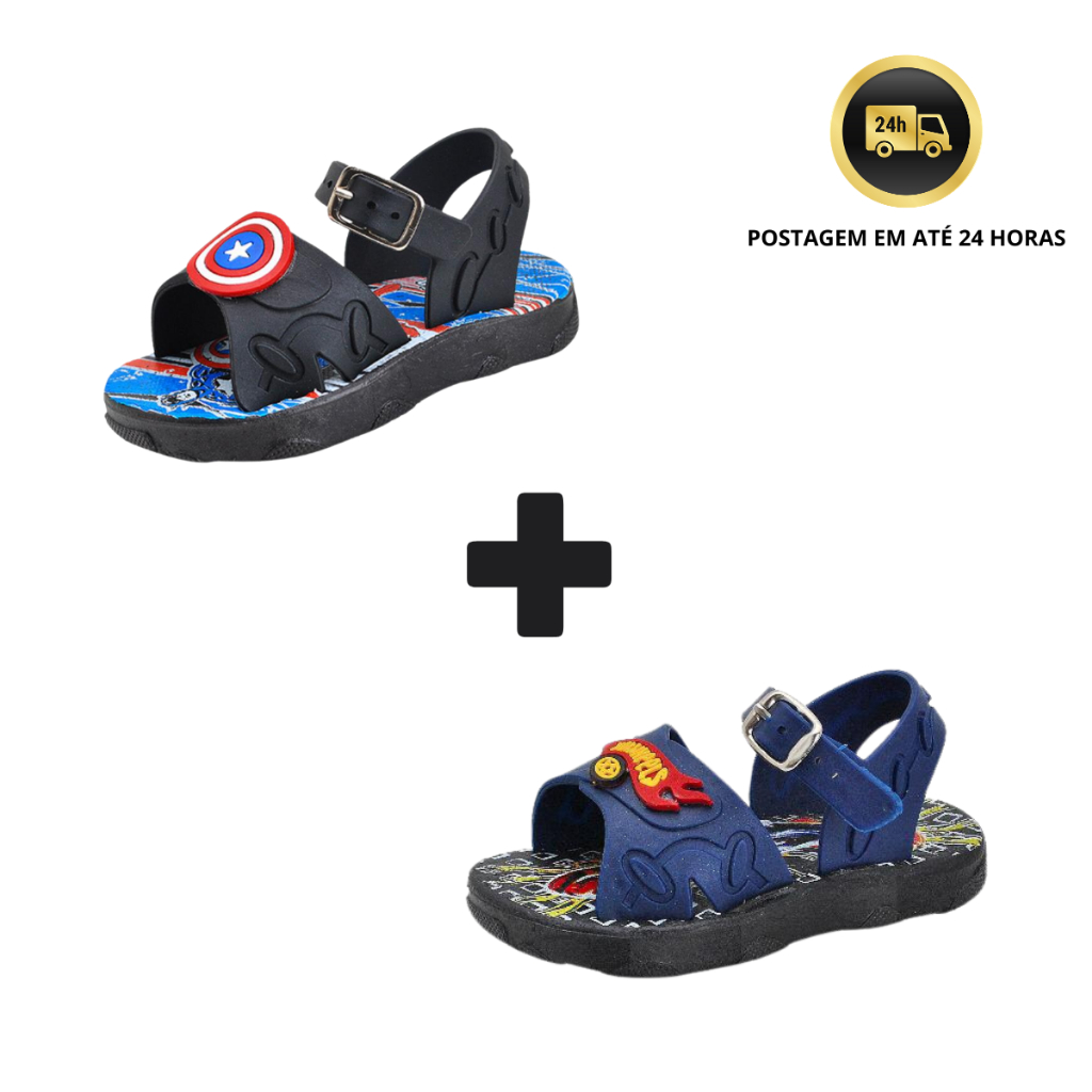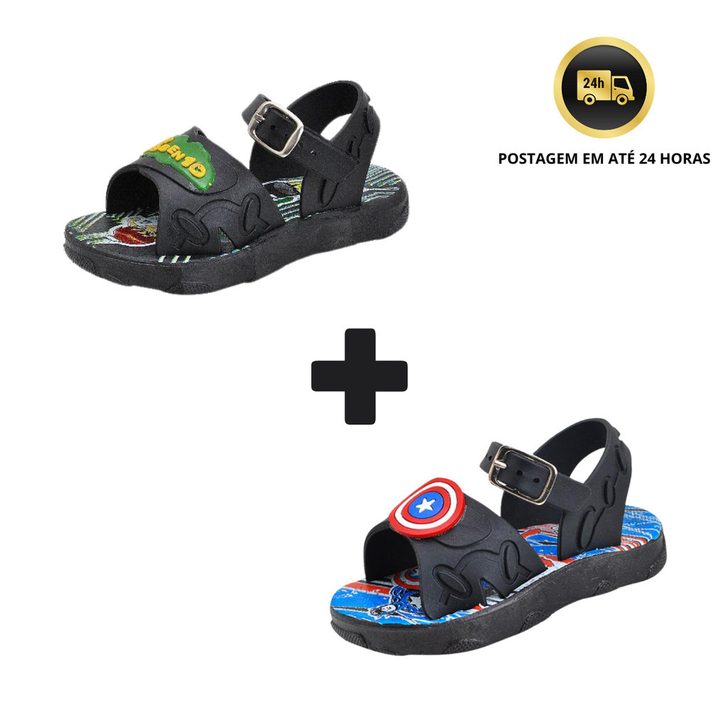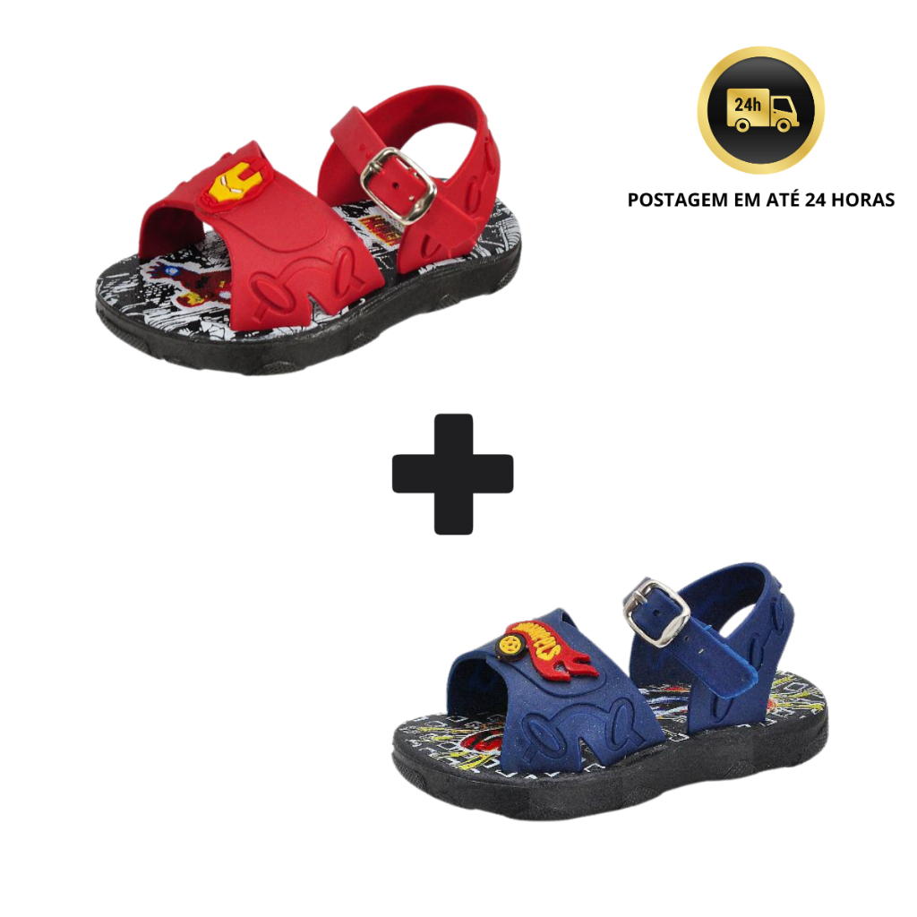 Kit 2 Pares Sandália Papete Menino Bebê Personagens dos Super Heróis !