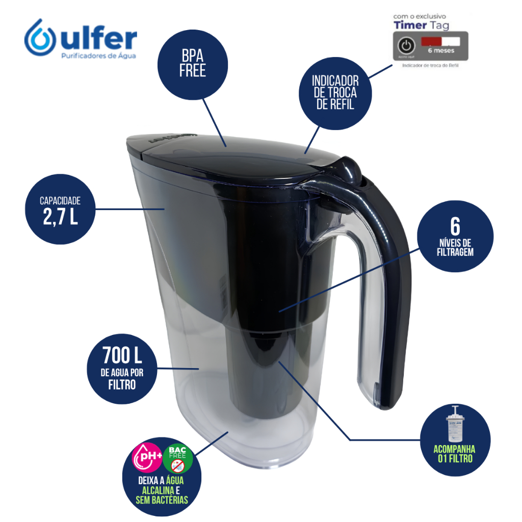 Jarra Purificadora De Água Super Alcalina Ionizada Nanotecno Pratic Ulfer Bacfree Branco