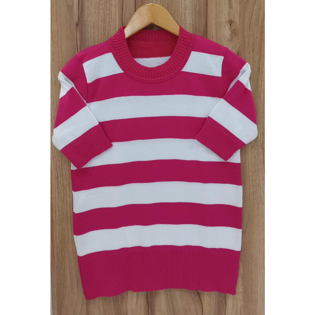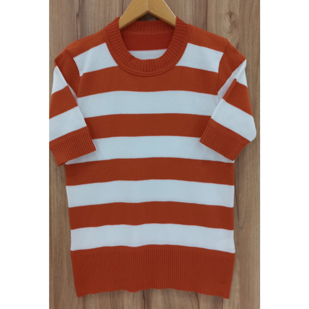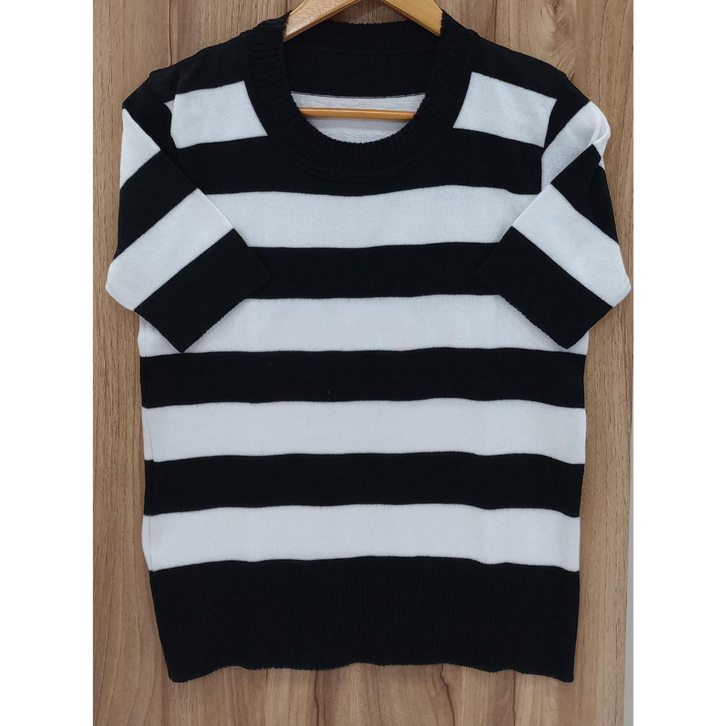 Blusa feminina tricot modal listrada moda evangelica decote careca .