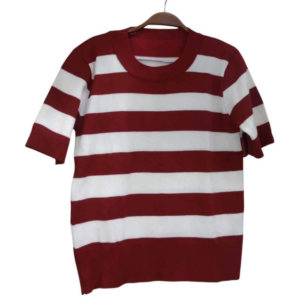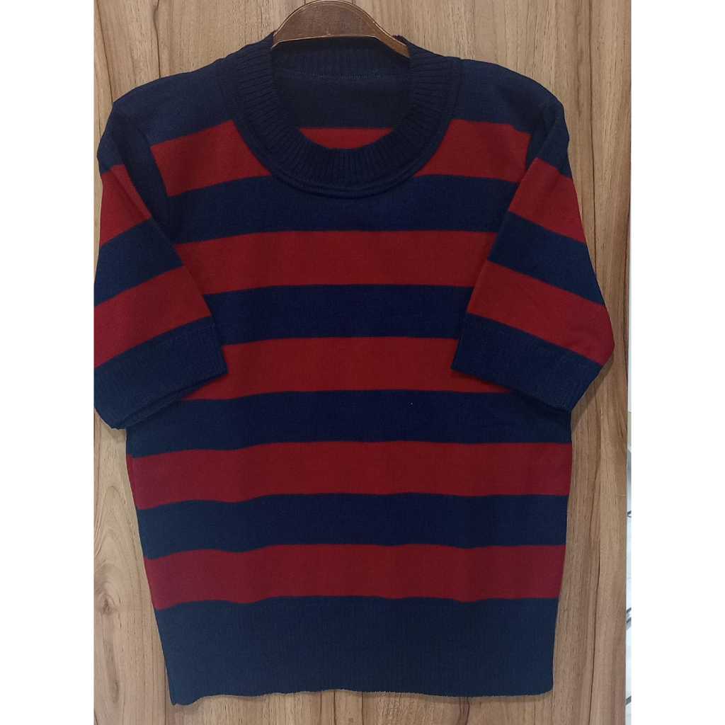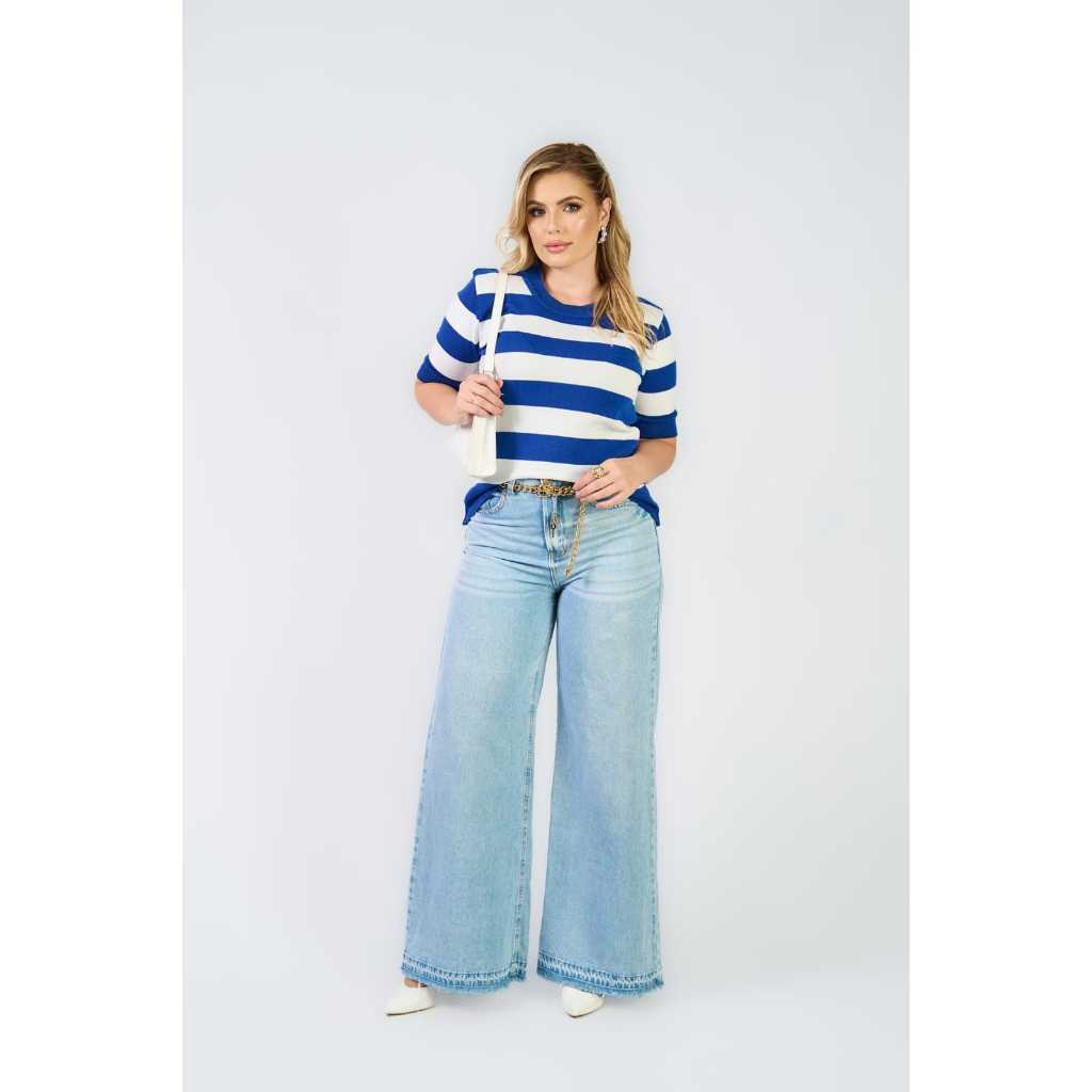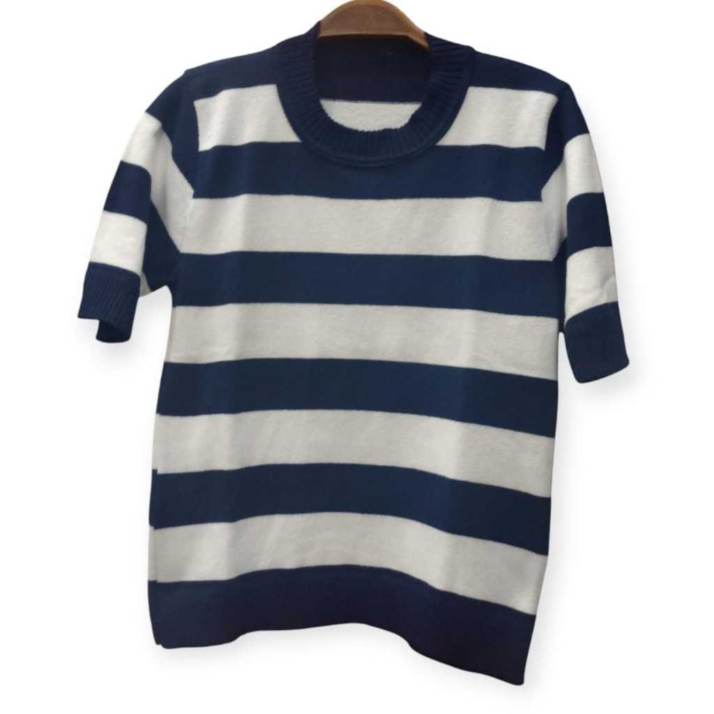 Blusa feminina tricot modal listrada moda evangelica decote careca .
