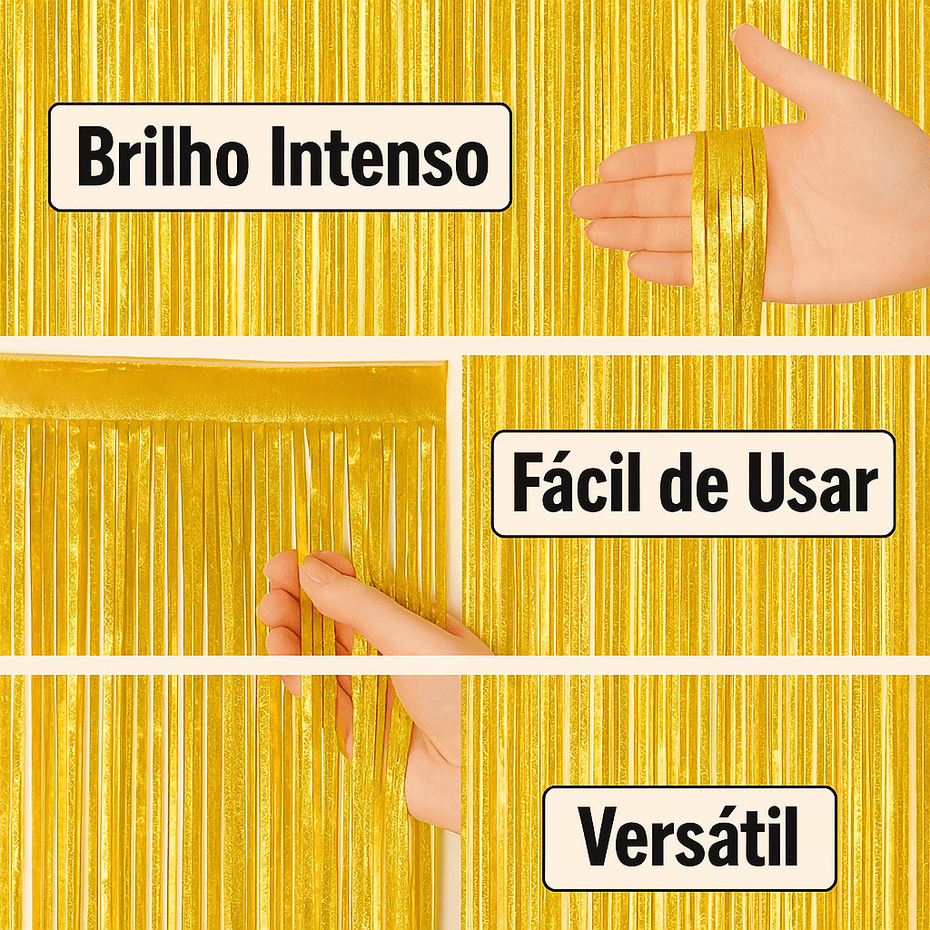 Kit 5 Cortinas Metalizadas Lisa Franja 2 x 1 Metros Decoração de Festa Rápida Organização Prática