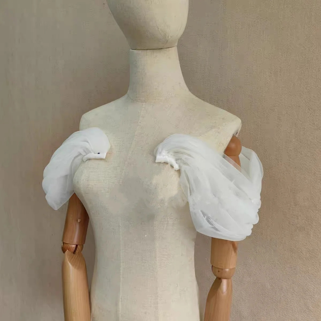 Um Par De Mangas Deteáveis De Tule Xale Para Vestido De Casamento Removível Noiva Acessórios