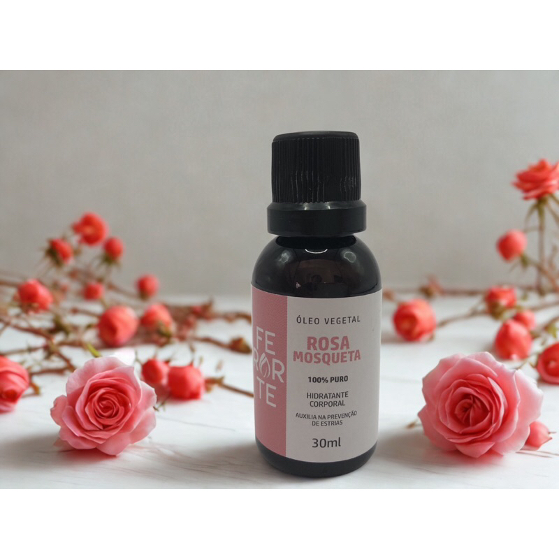 Óleo de rosa mosqueta 100% puro vegano 30 ml com conta gotas anti estrias e celulite, anti sinais, hidratante