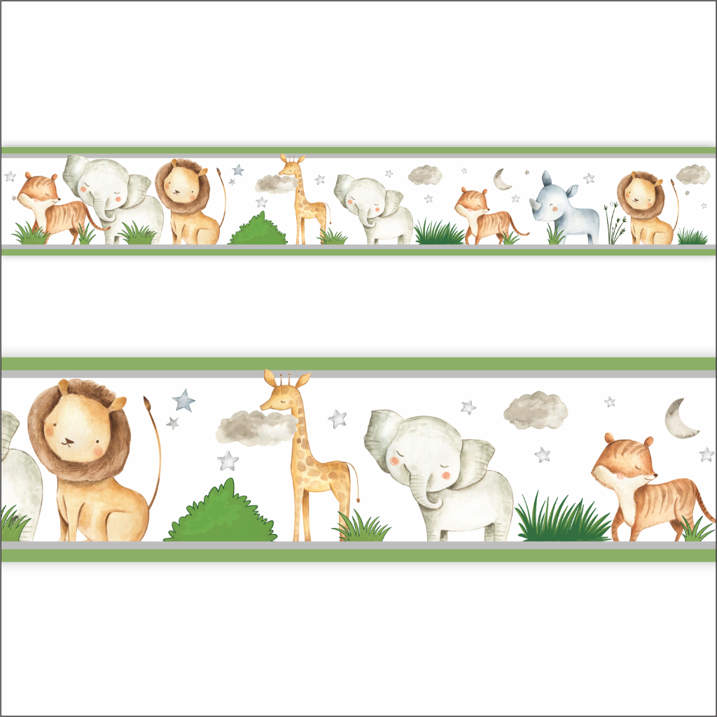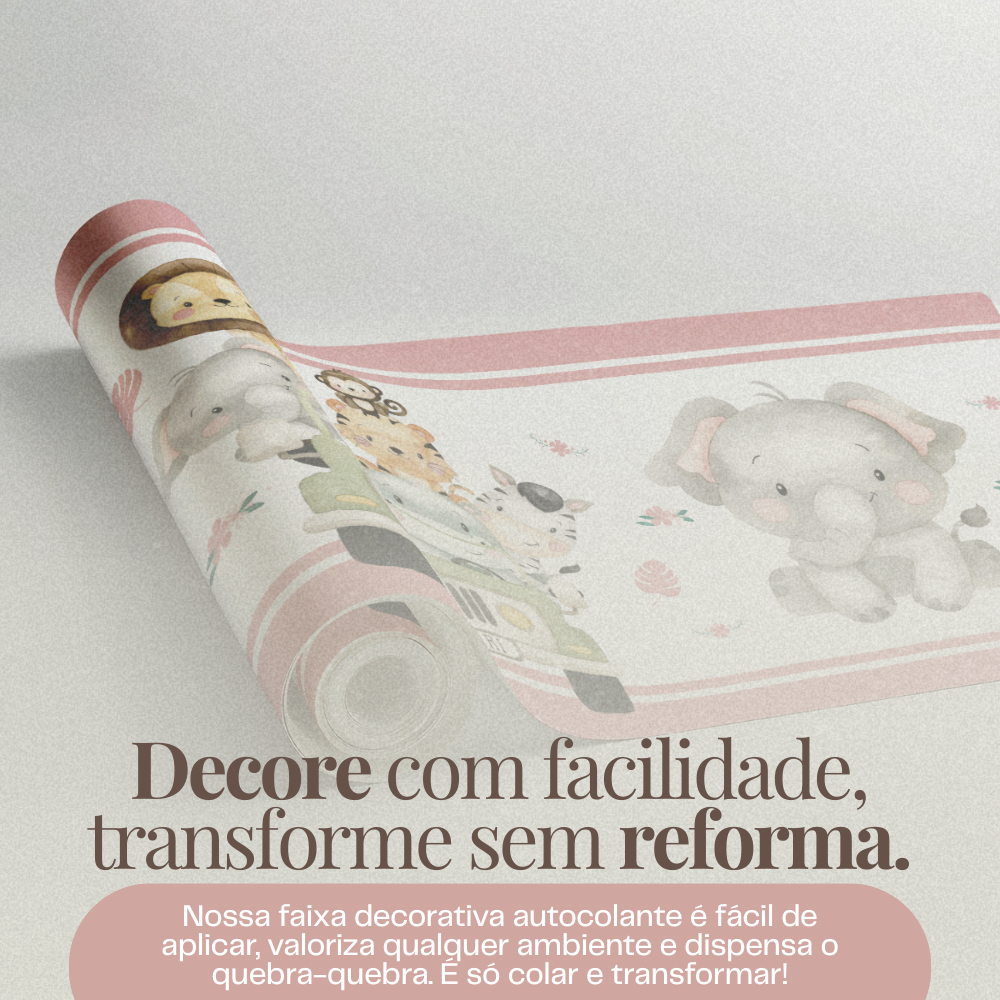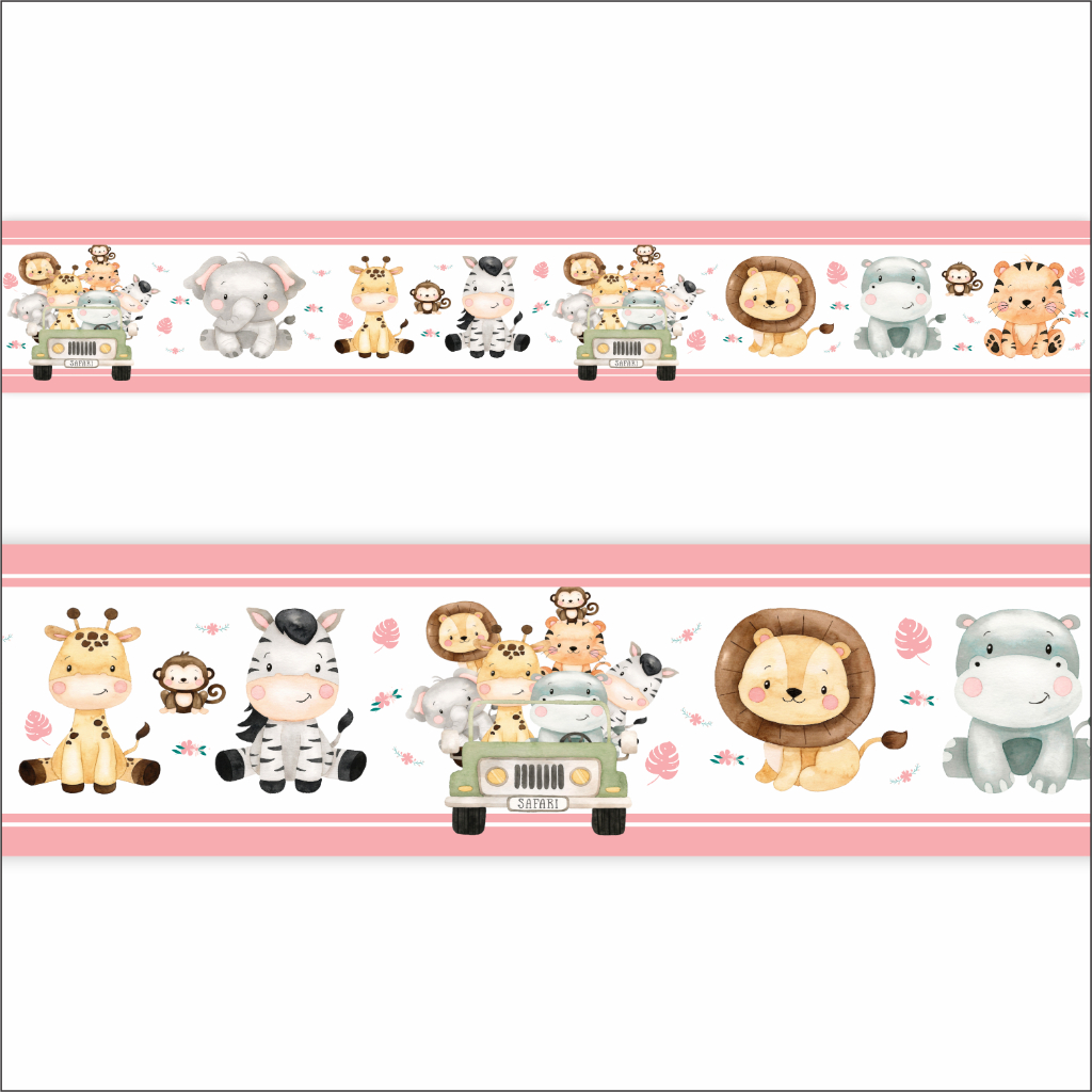 Papel de Parede Border Faixa Infantil Menino e Menina Animais Lavavél 1,00m x 15cm