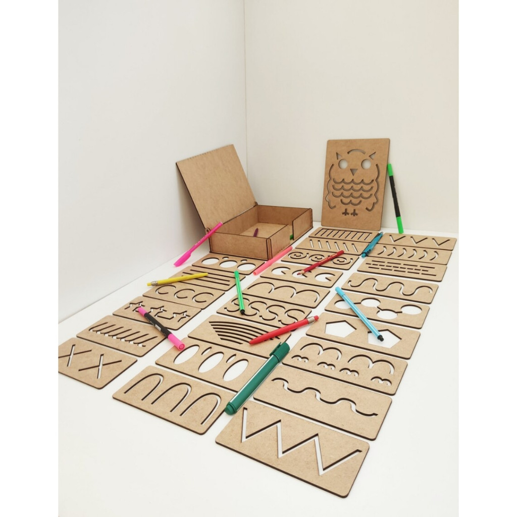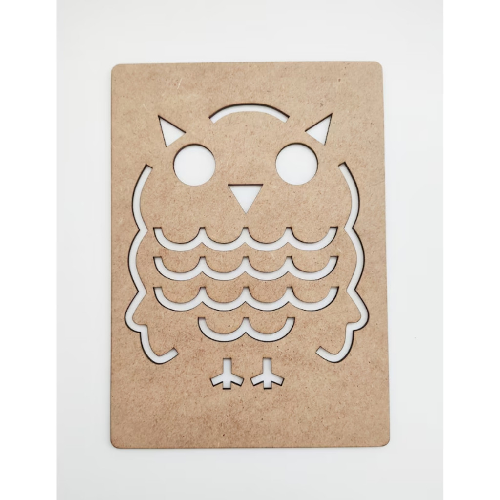 Kit 25 Moldes Placas MDF 3mm Cru Coruja Linhas com Caixa Canetinha Crianças