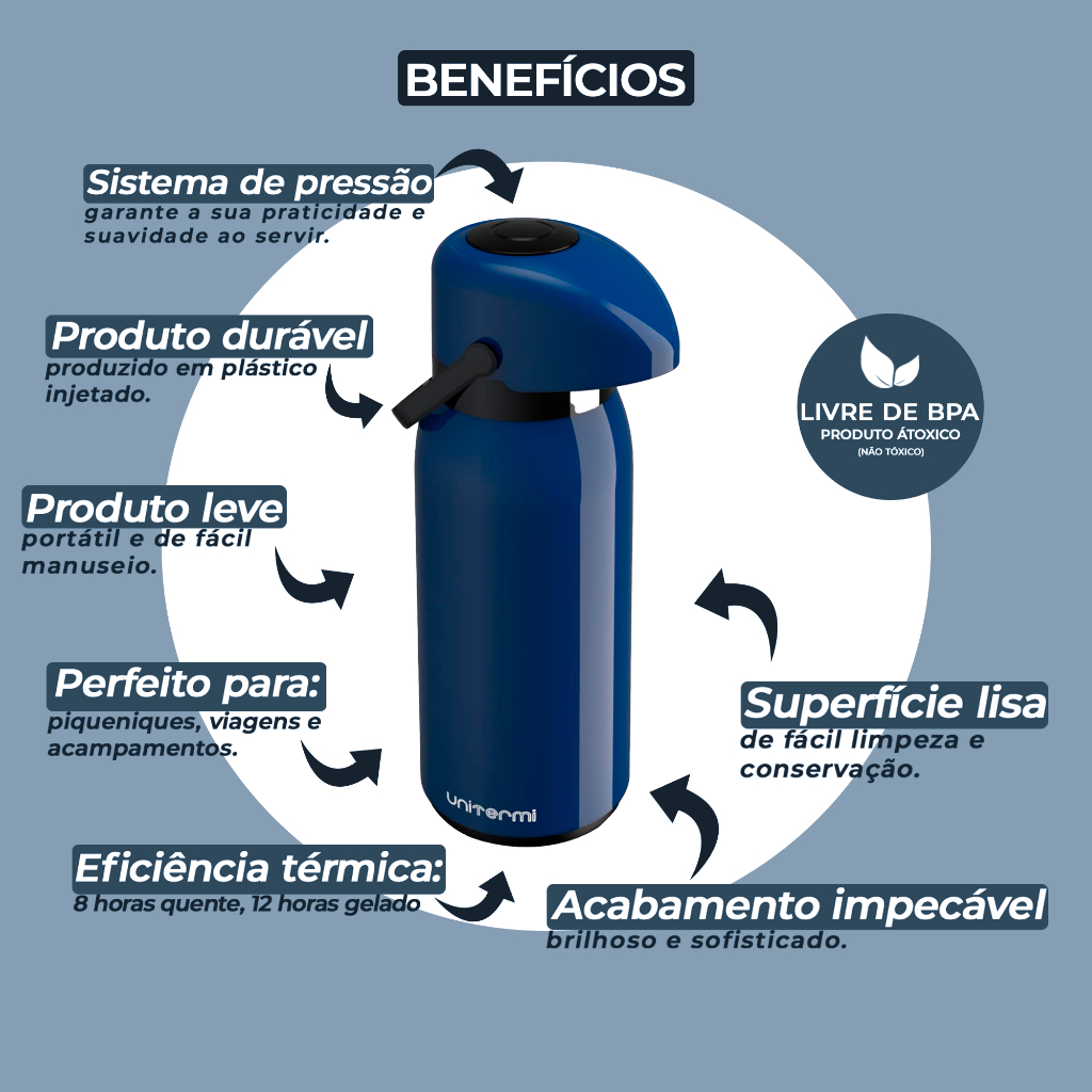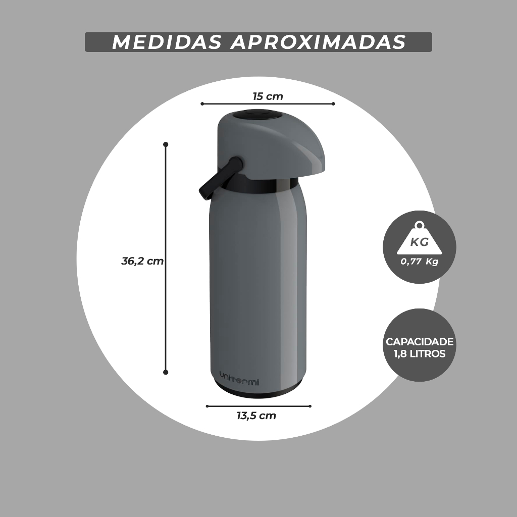 Garrafa Térmica🔥 1,8L 1.8 1L 600ml com Pressão Unitermi Verona Ideal para Café☕ Chá Tererê🧉 Água❄️